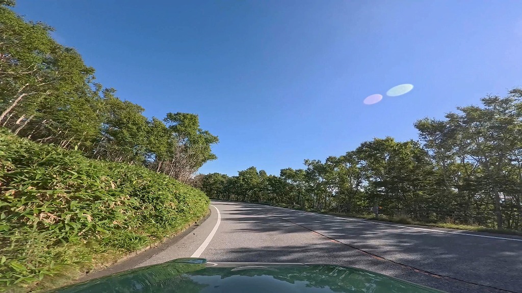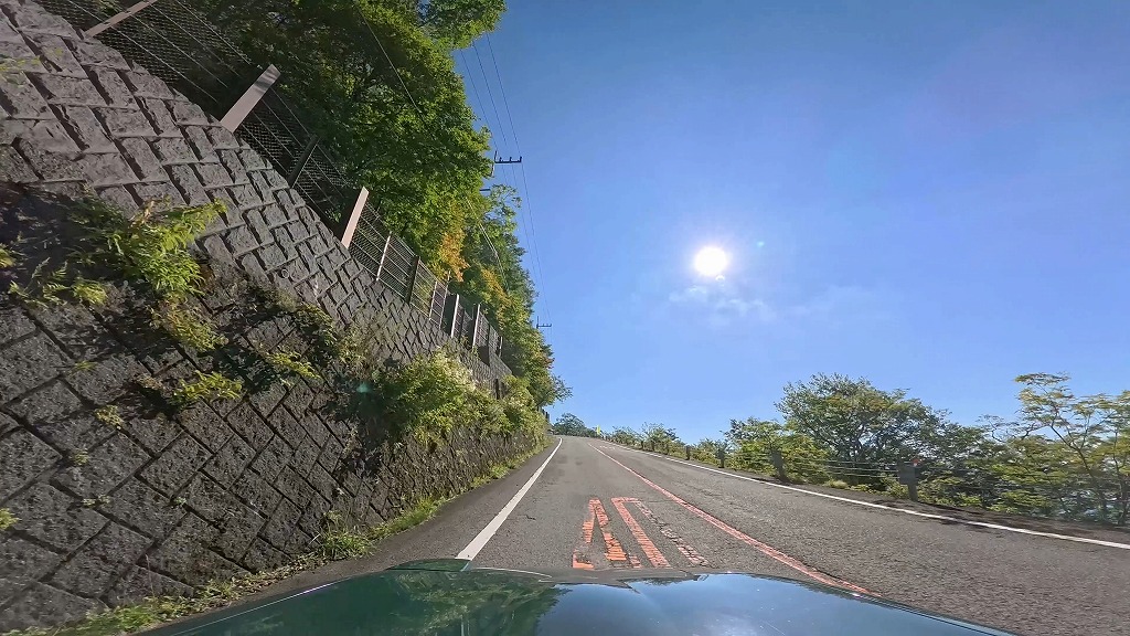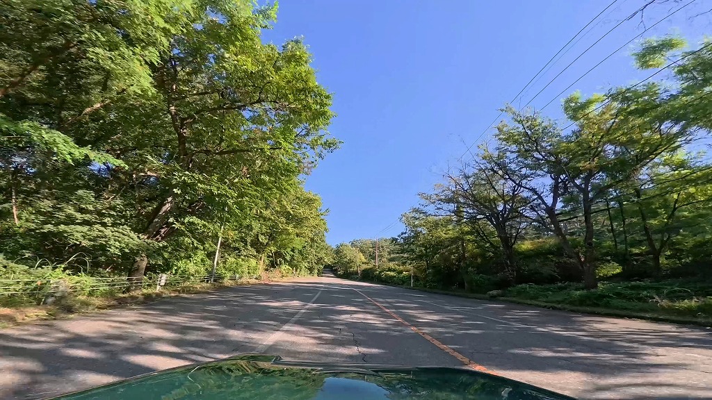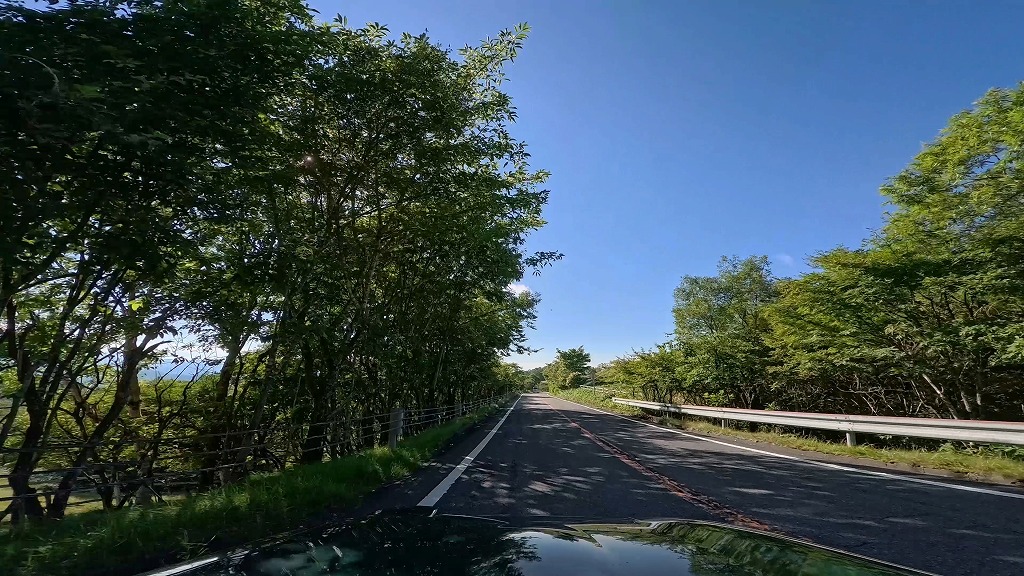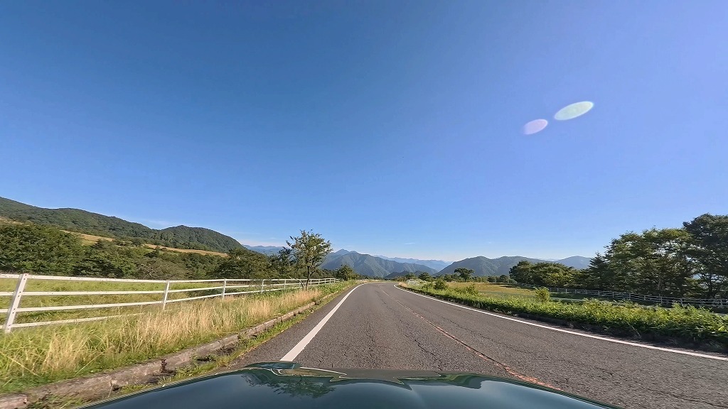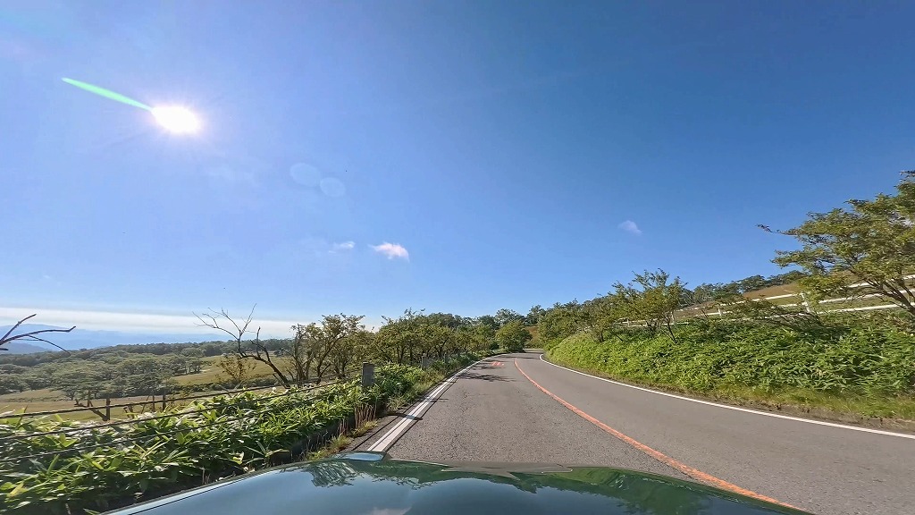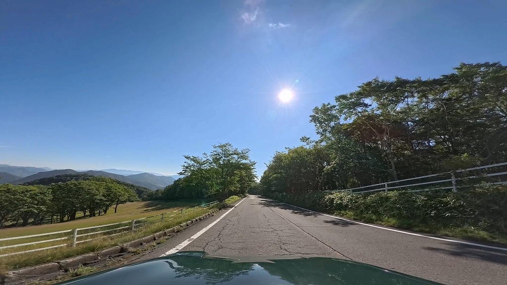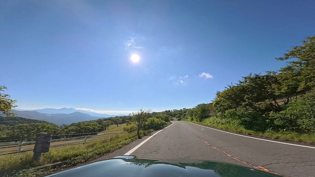 日光市街地から霧降の滝を横目に進むと、道は徐々に標高を上げ、山岳道路らしい適度なカーブが続きます。やがて視界が開け、広大な高原道路の風景へと変わっていきます。