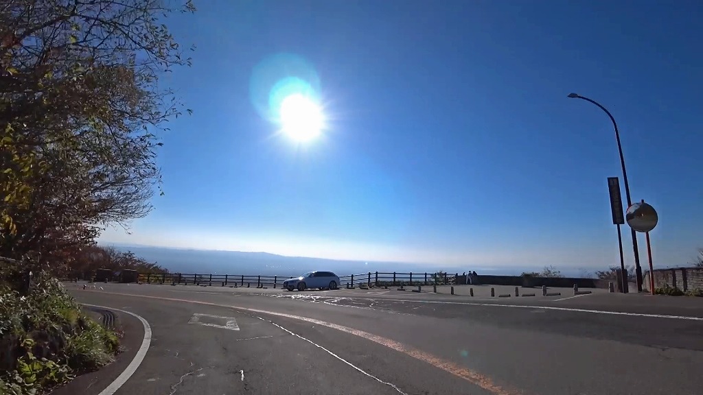 ここは急なカーブと勾配の途中にある為、出入りする車には注意。降り側は確りと車間を取った方が良いと思われます。