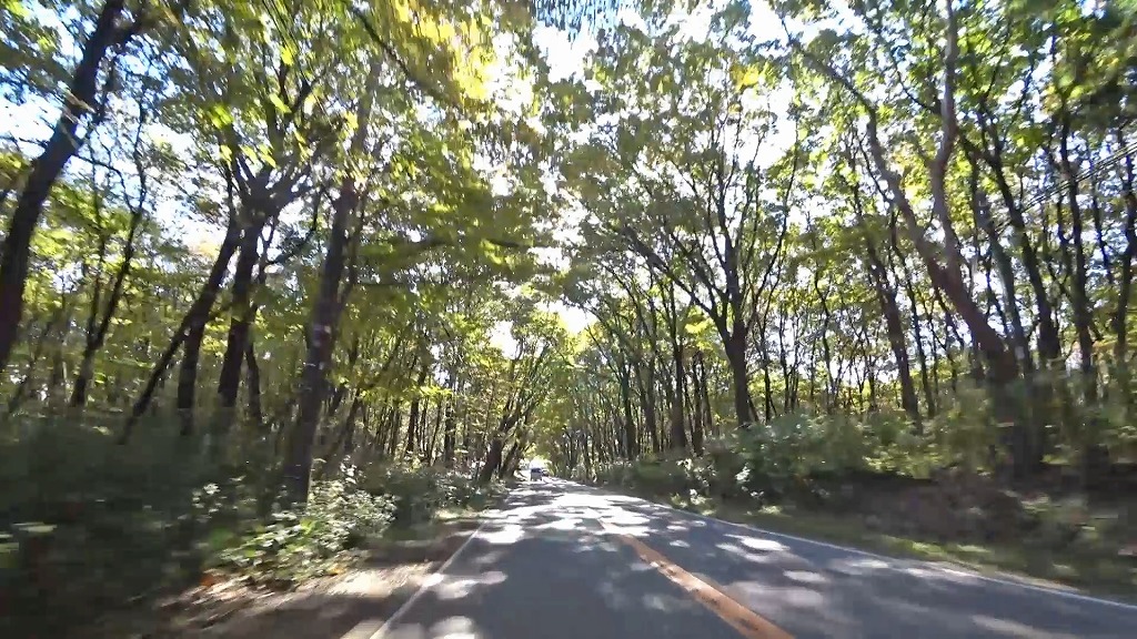 意図的にでしょうか?道の周囲を囲む様に木々があり、気持ちの良い道でした。