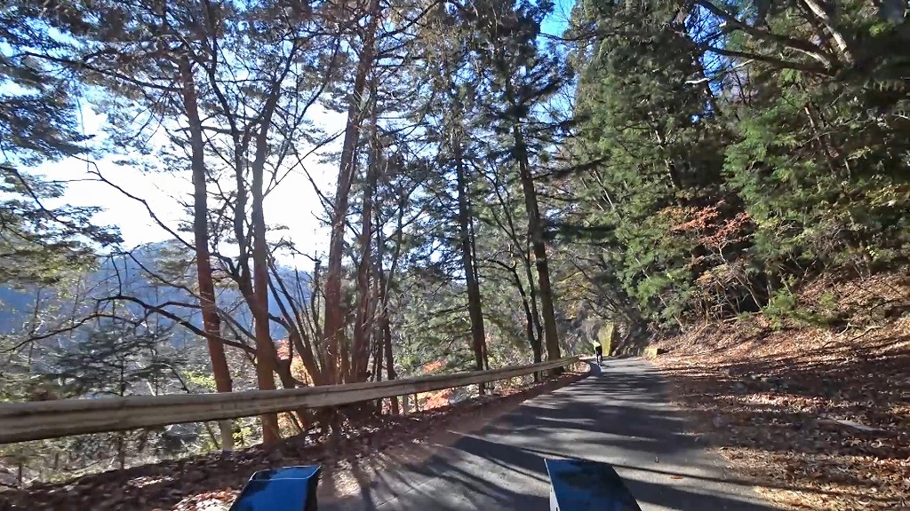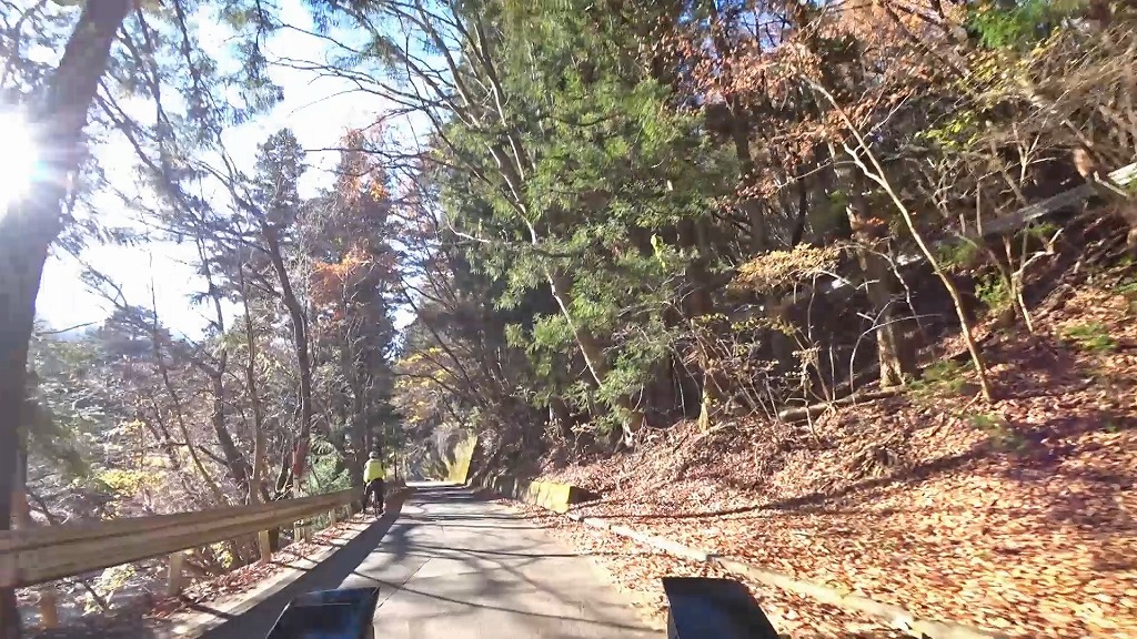 するとこれまだ比較的緩やかだったカーブが厳しく。勾配は険しい道になります。