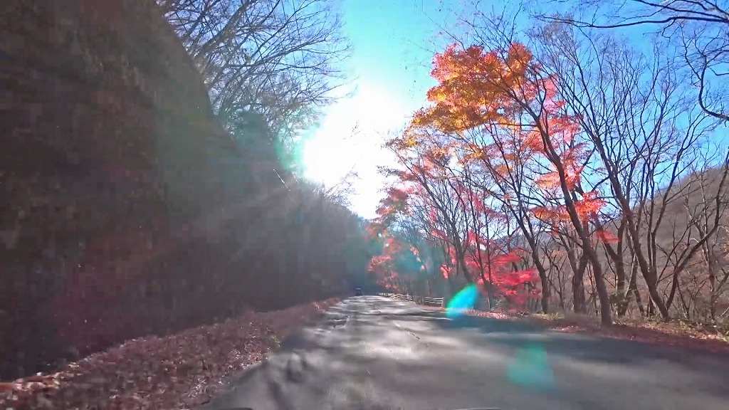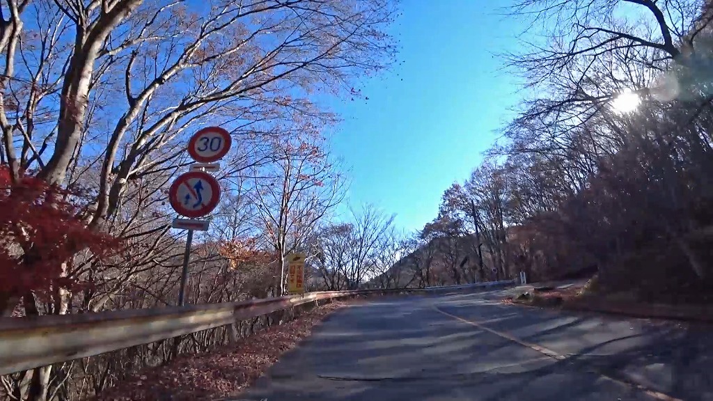 名前の通り、沿道にはもみじが多く植えてあり、秋には紅葉が綺麗との事ですが、今回晩秋に行った為、かなり落葉してしまっており、日光市側の一部区間でしか見る事が出来ました。