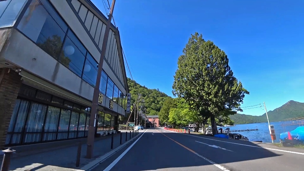 スタート地点からしばらくは、中禅寺湖畔の穏やかな道を走ります。静かな湖の風景を右手に眺めながら進むと、日光山 中禅寺(立木観音)の脇を通り、歴史ある場所に立ち寄ることもできます。