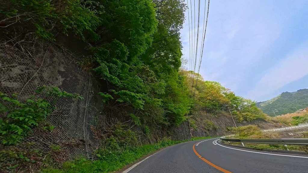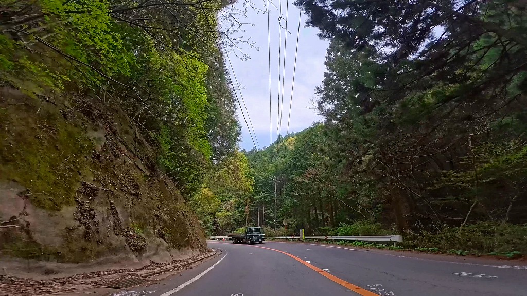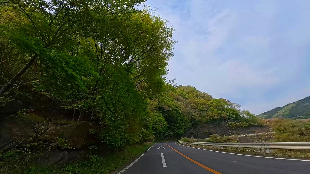 道幅も広く、勾配も緩やかなトンネルを抜けると、快適な走りが楽しめます。この区間は山々の自然に囲まれながらも、過度に険しい道ではないため、安心してドライブできるでしょう。
