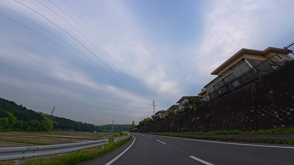 県道658号に入ると、道はしばらく田園風景と片田団地に挟まれた区間を進みます。