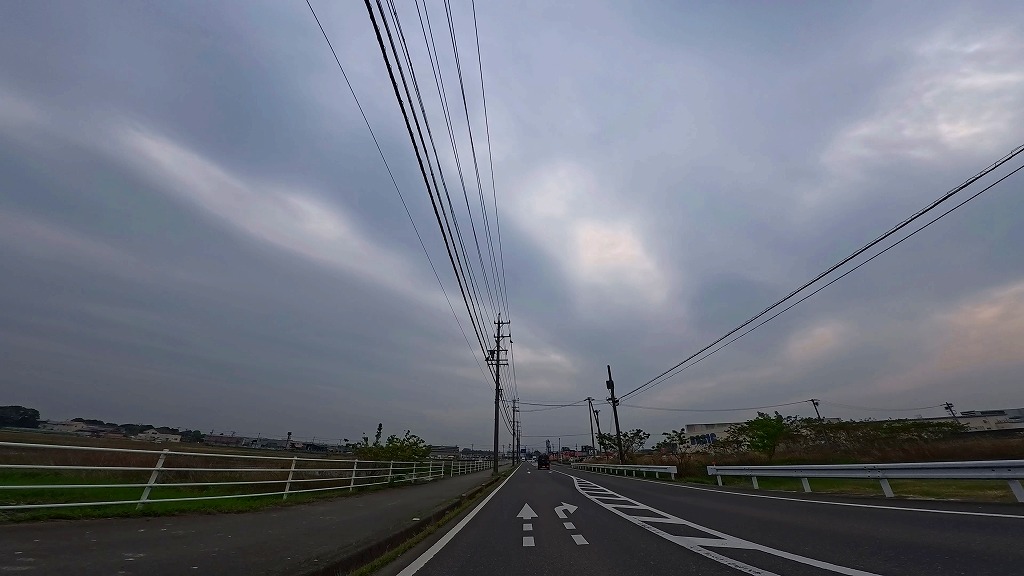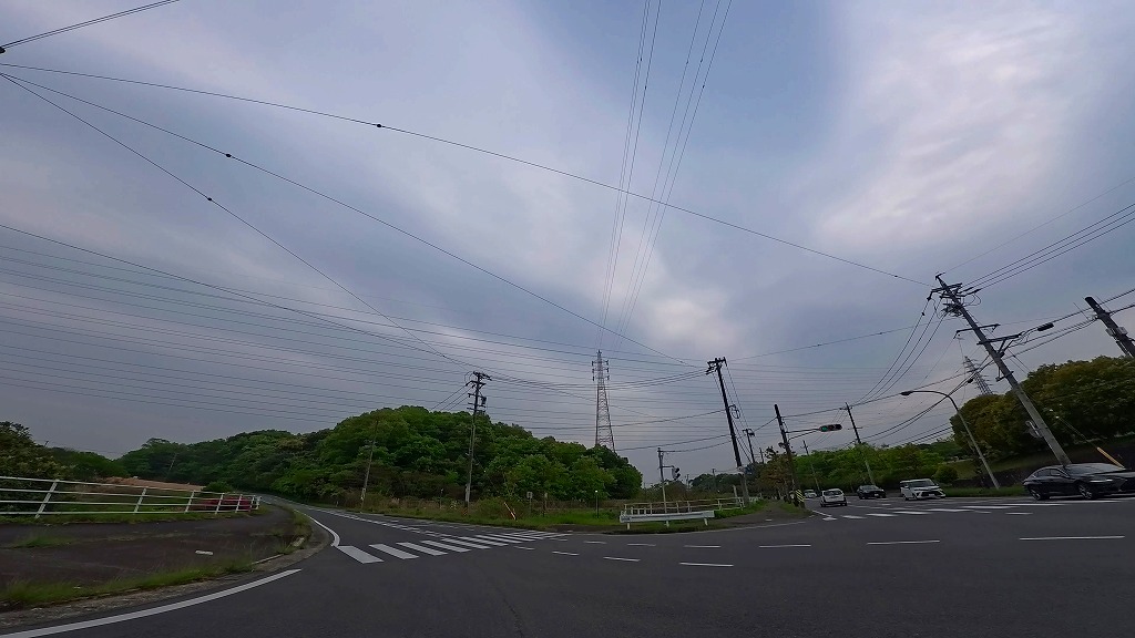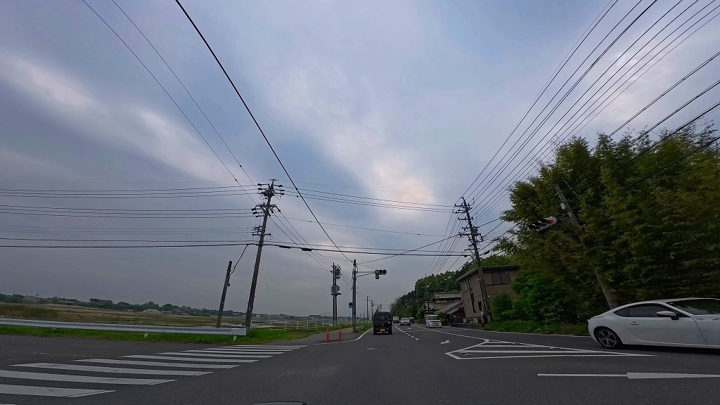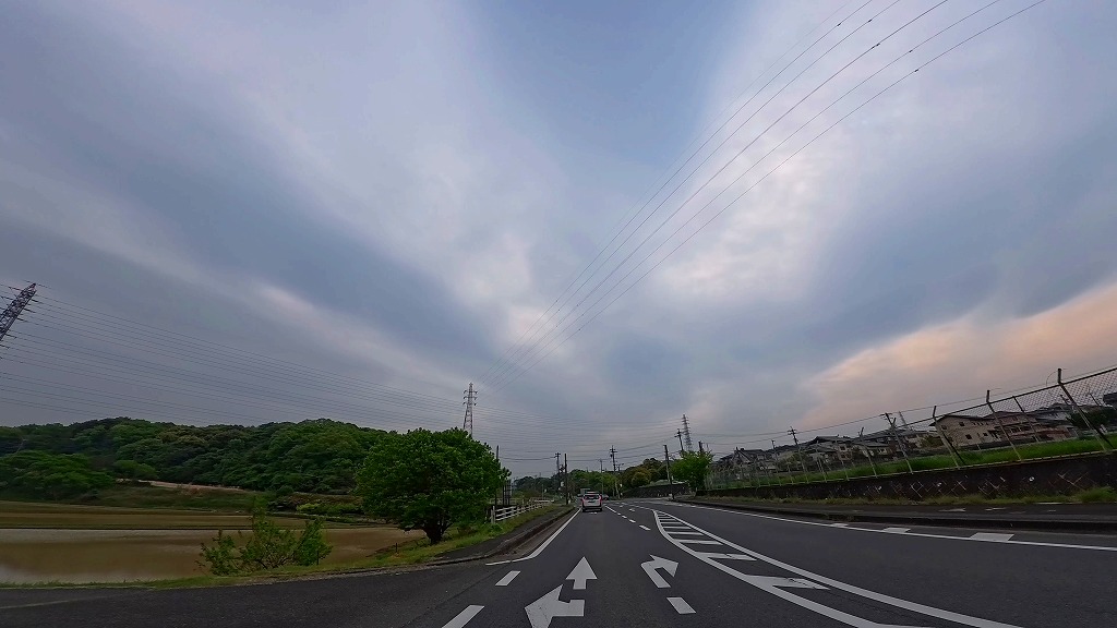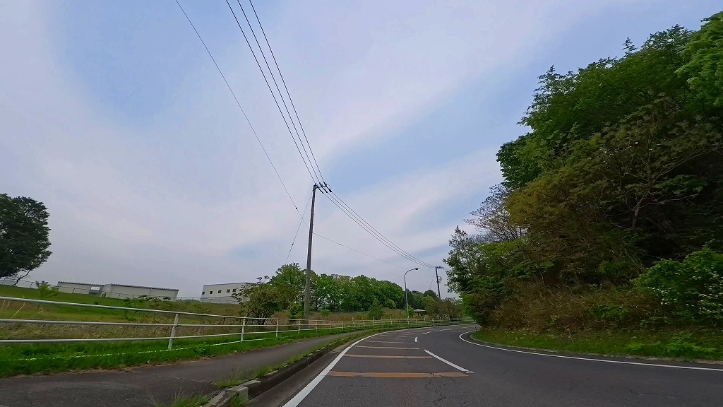 片側一車線の田園と団地に挟まれた道を進みます。