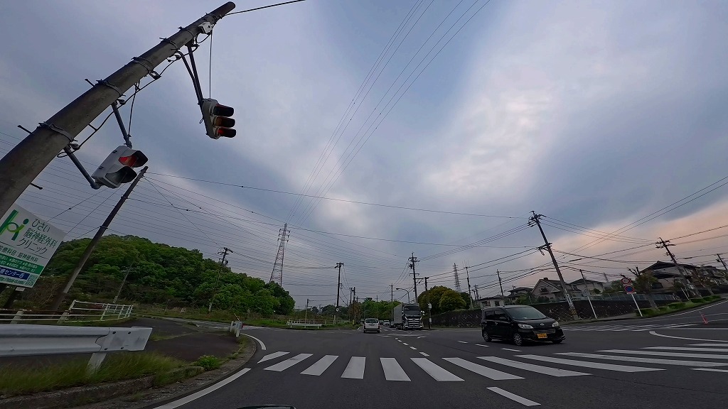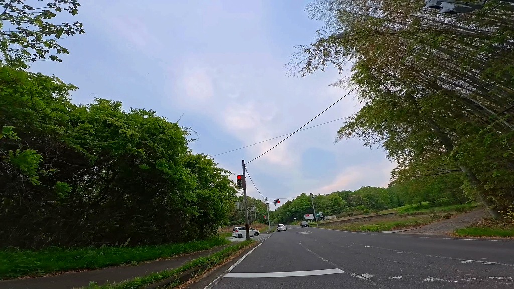 少し進むと@交差点1(信号あり)が現れます。(02:46)