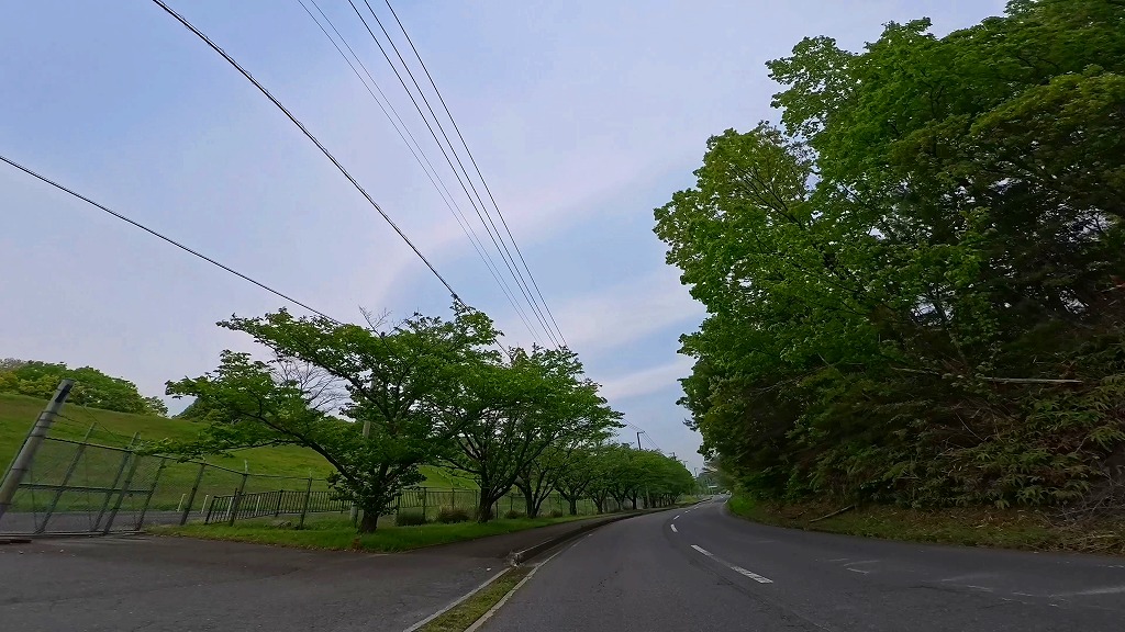 道はなだらかな丘になっており、適度な勾配とカーブが続きます。広大な演習場を横目に進むユニークな体験は、この道ならではの風景といえるでしょう。