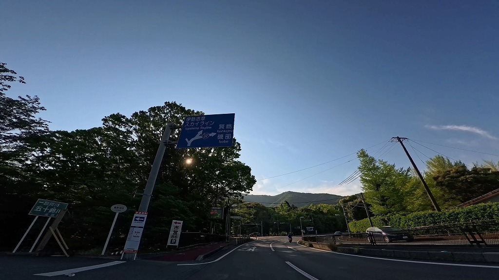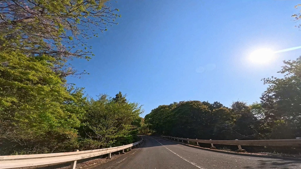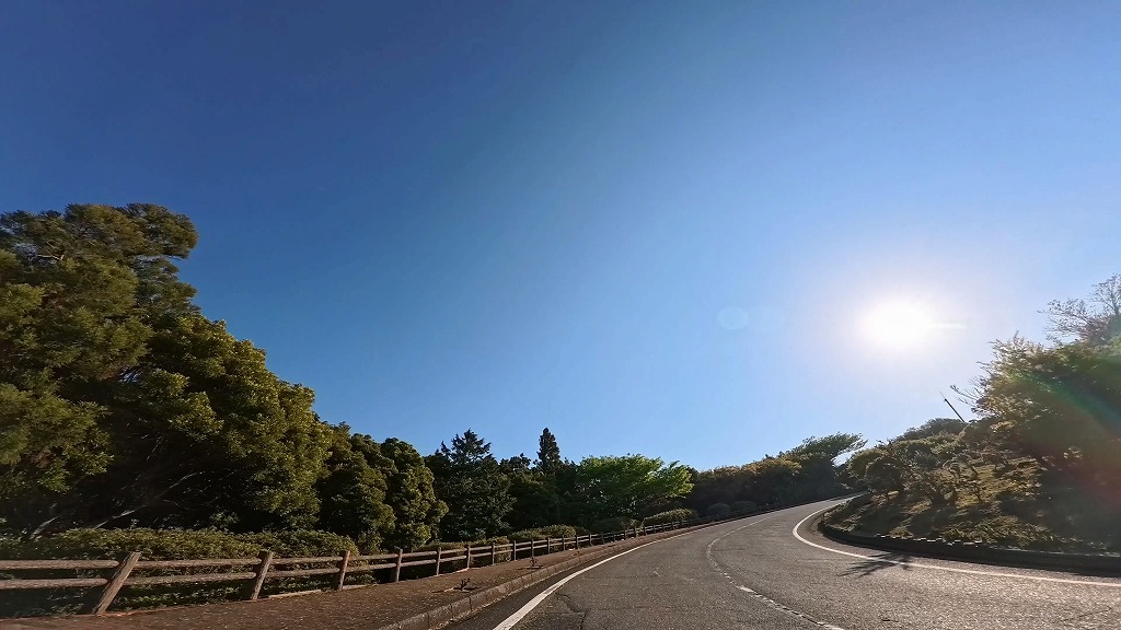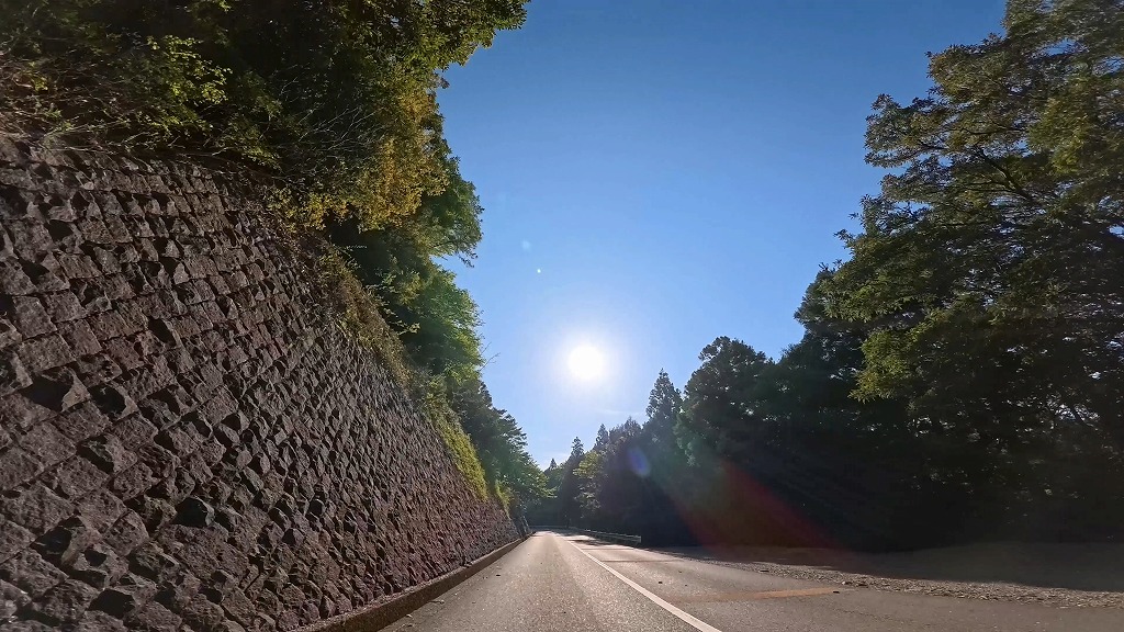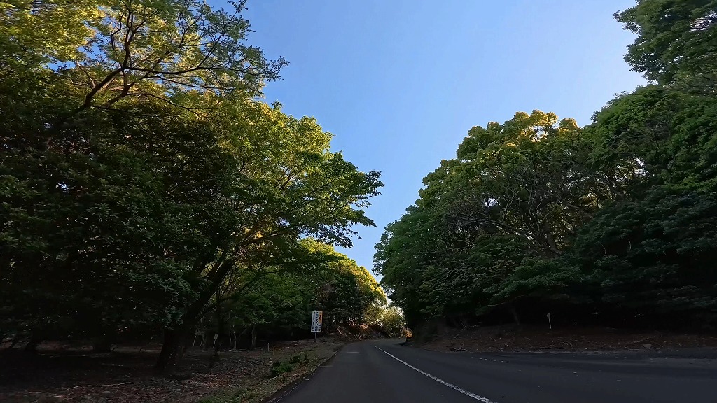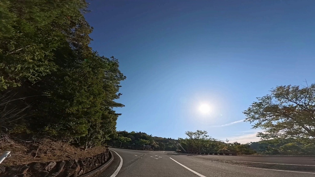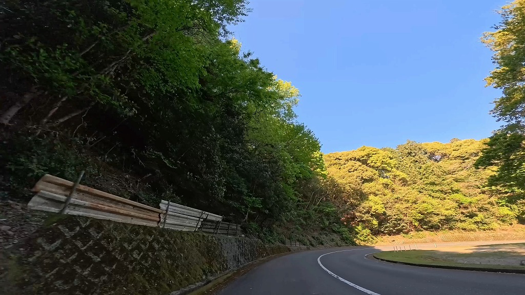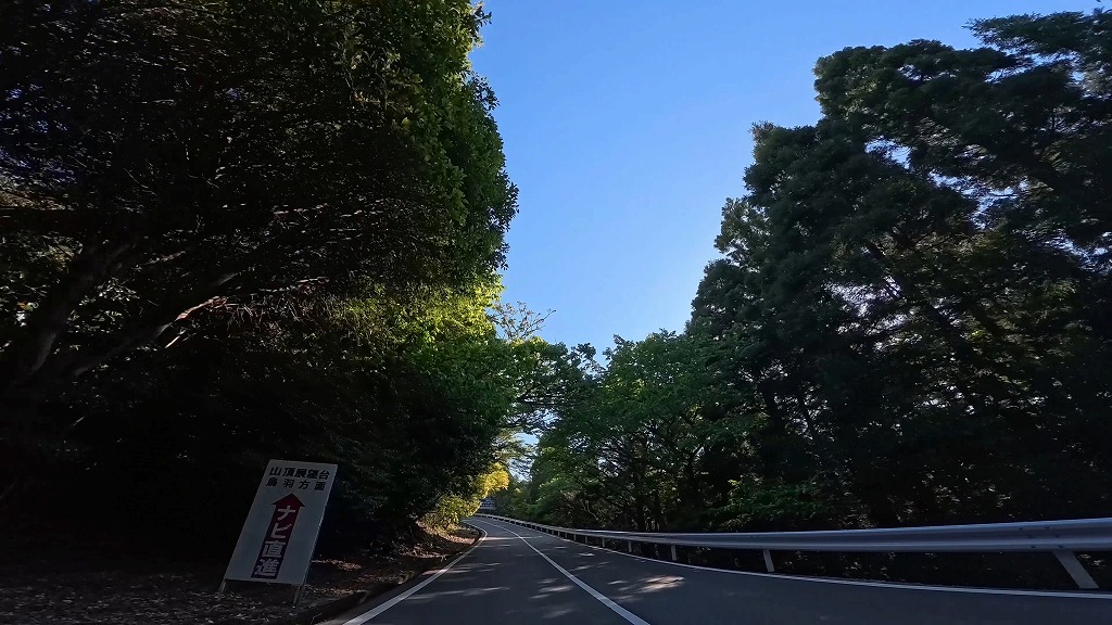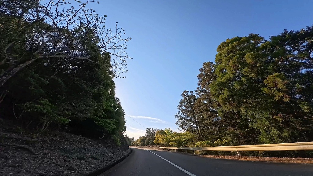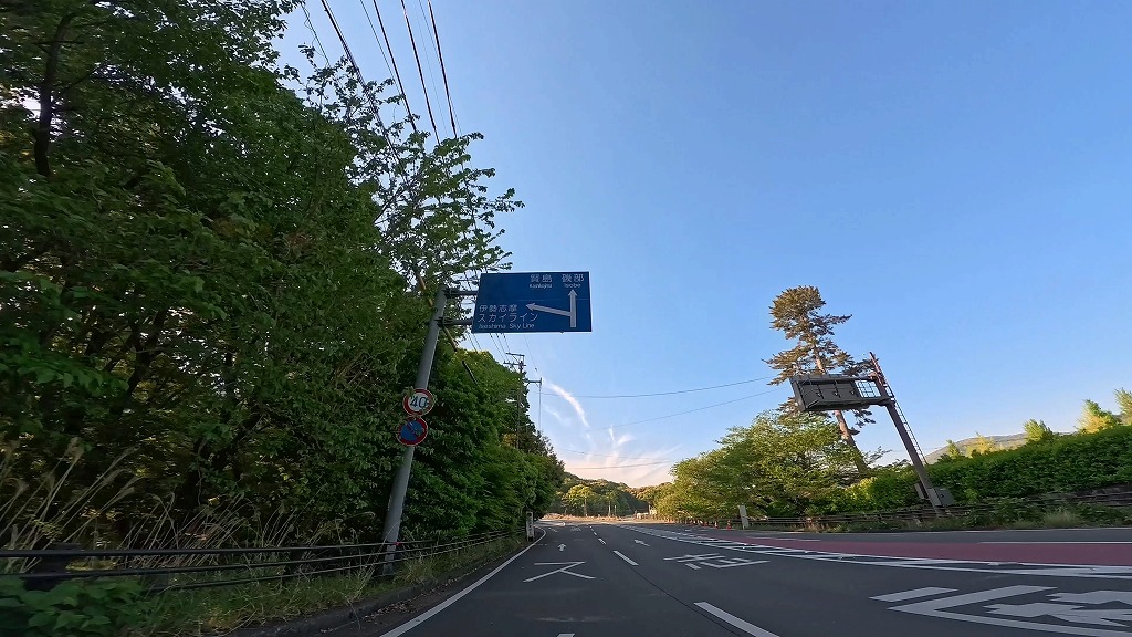 伊勢市側からスカイラインへと入ると、山頂へ向かって一気に標高を上げていきます。道は比較的勾配が厳しく、カーブが続く印象です。片側一車線ですが、一部道幅がやや狭く感じる箇所もあるため、慎重な運転が求められます。