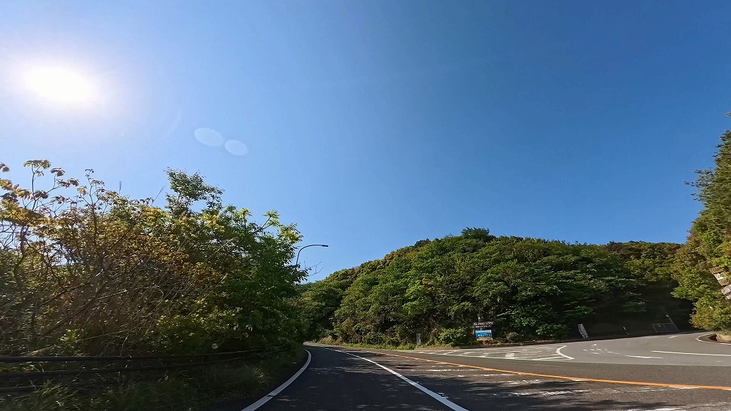 ですが、折角リアス式海岸が入り組む志摩半島の丘陵地帯の稜線に沿って道が走っているのですが、殆どの区間で木々に囲まれた道を進む単調景色で、見晴らしの良い場所が少ないのがとても残念。