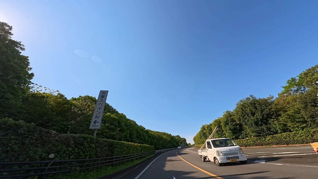 少し進むと、D志摩スペイン村の入口が現れます。(22:57)