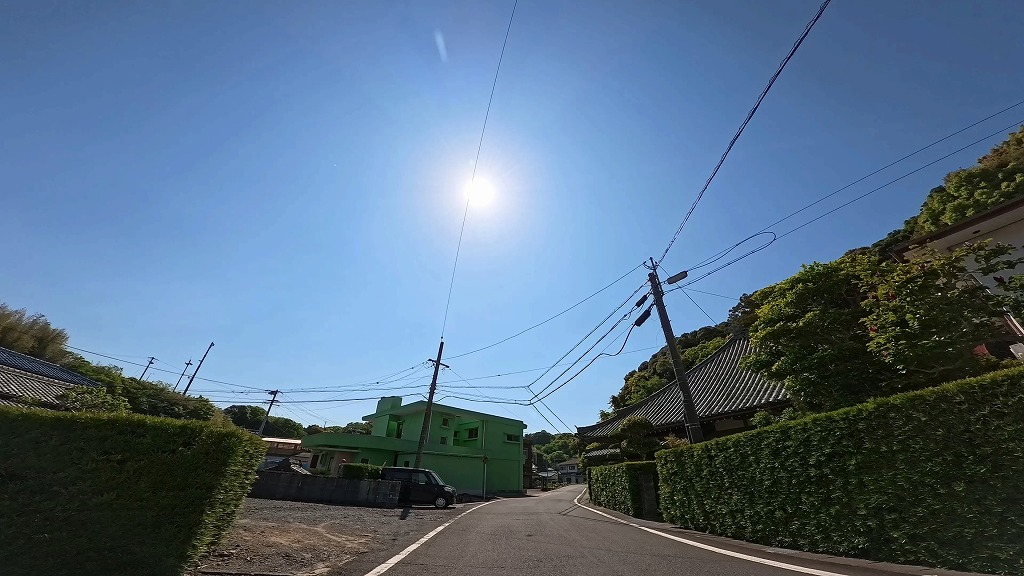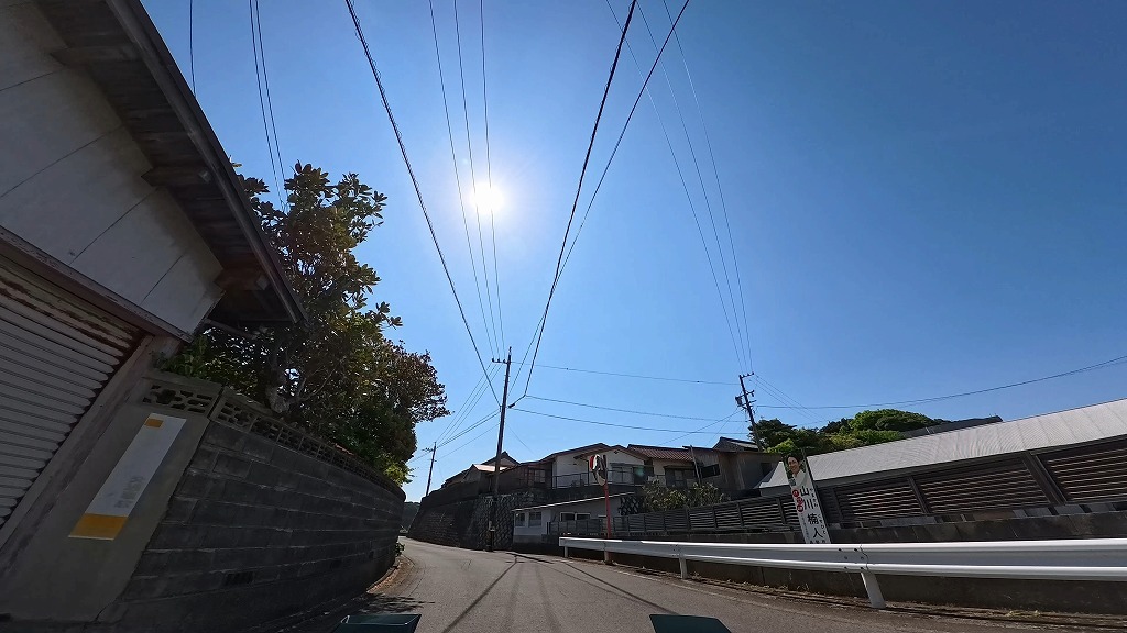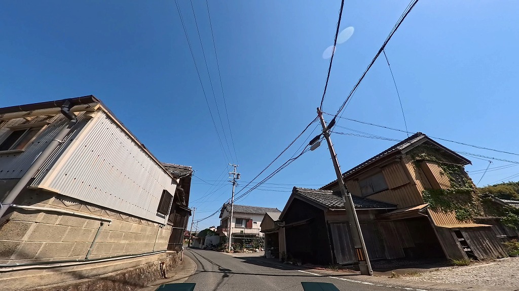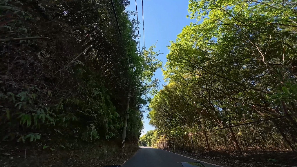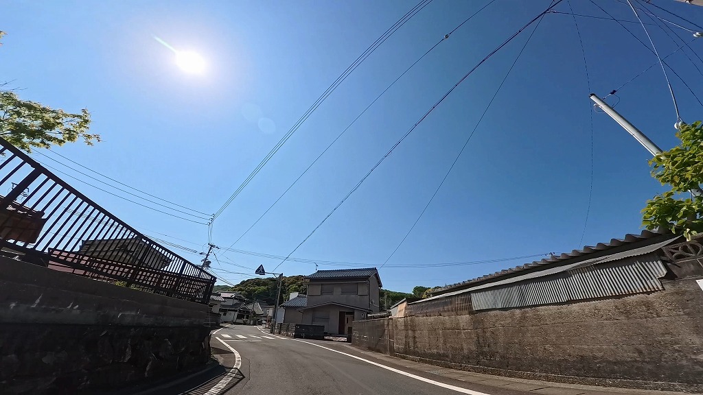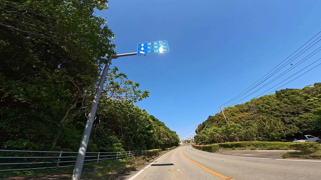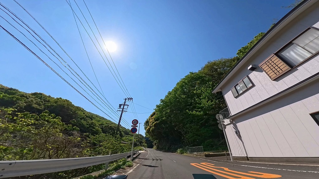 前半の国道260号は快適な快速路ですが、御座港付近を過ぎて国道から離れると、道幅が安定しなくなります。民家の間を抜ける生活道路となる区間では、道幅が狭く入り組んだ場所があります。