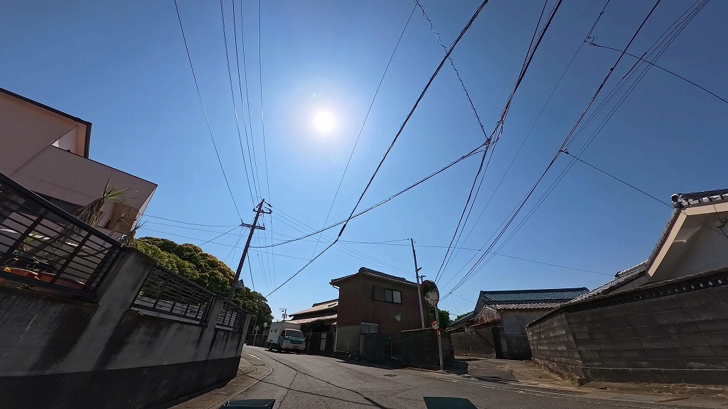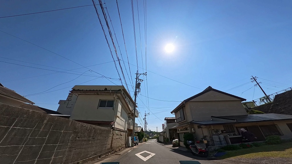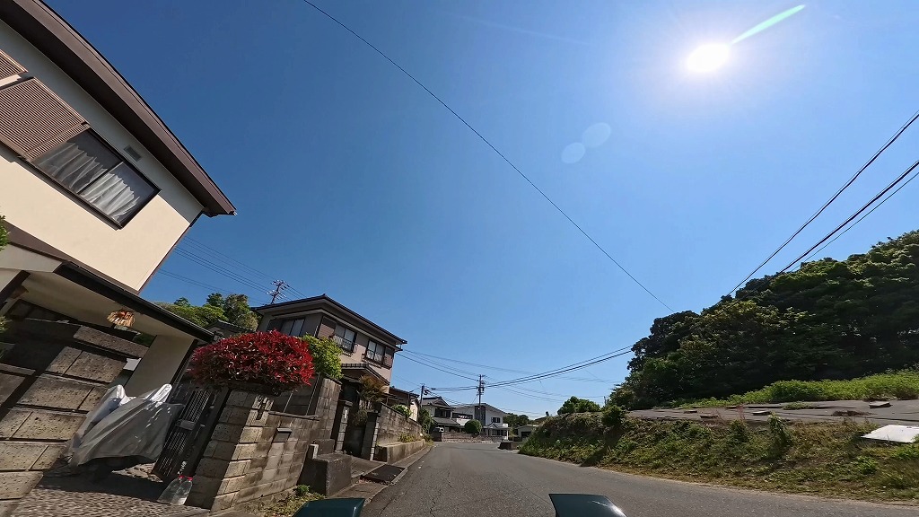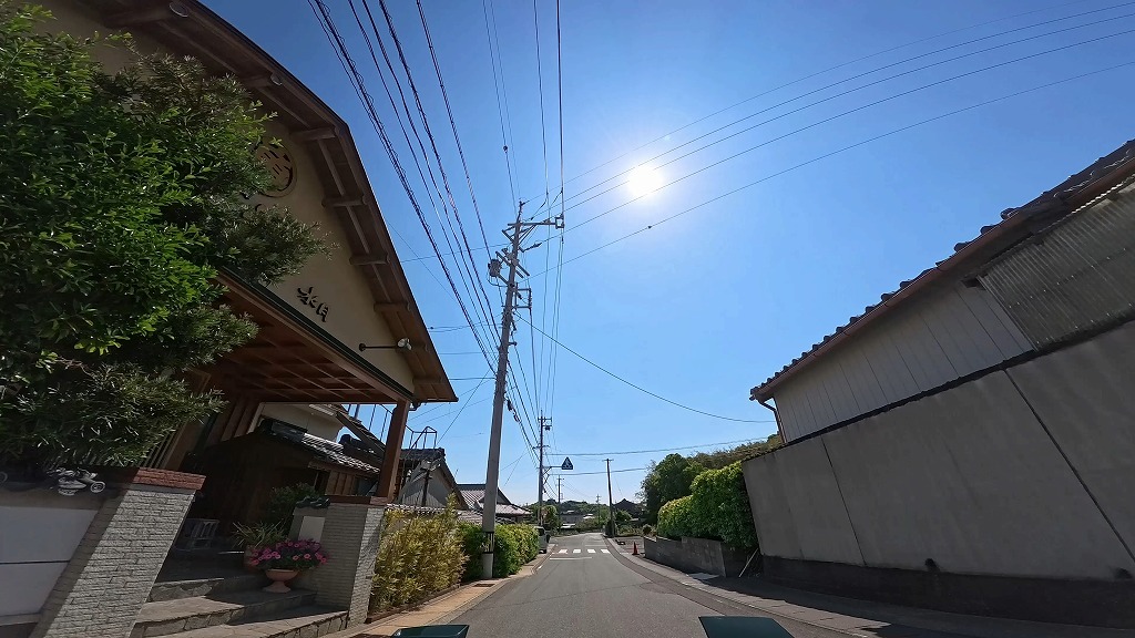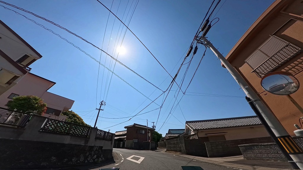 民家が建ち並び入り組んだ細い道。死角が多く、飛び出しに注意ですね。