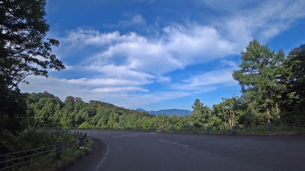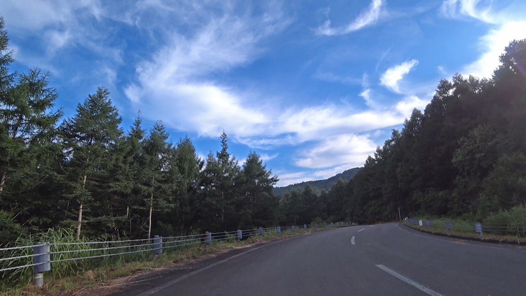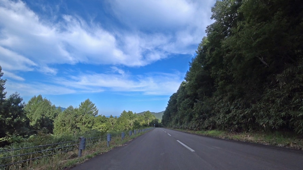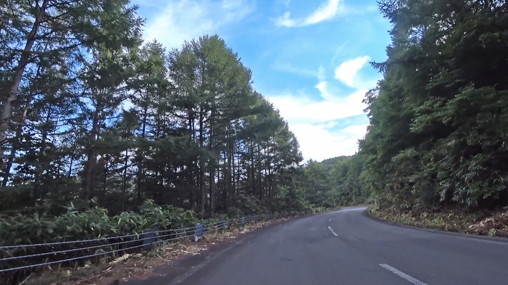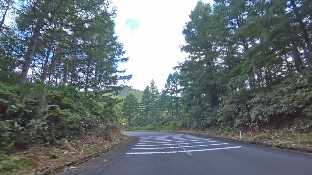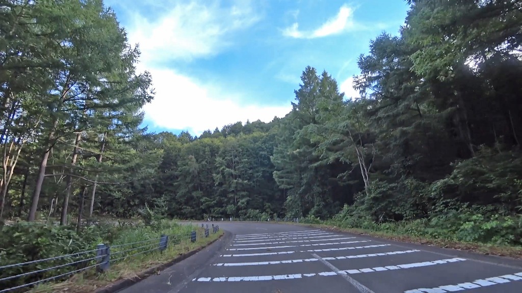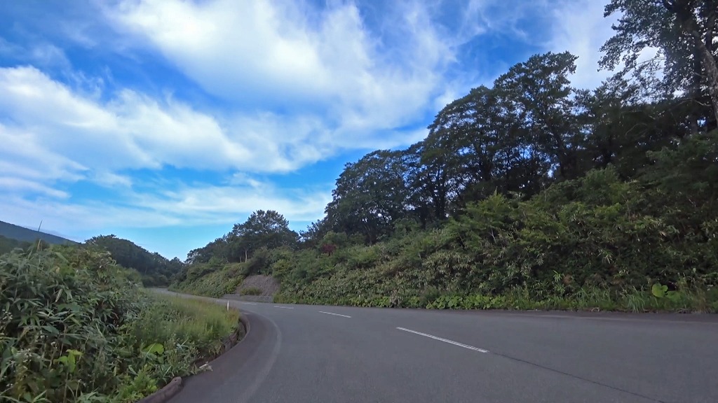 今回降りがメインですが、カーブは緩やかでスピードが乗りやすい印象ですが、常に降りが続くわけではなく、比較的なだらかな勾配が続きますが、時折、平坦な場所になり、速度の抑制にもなって走りやすい道でした。