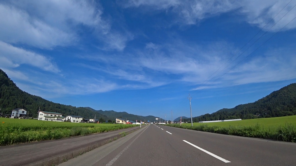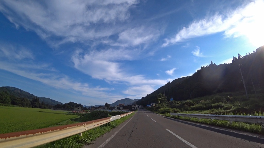 国道397号との交差点から先はなだらかな道となり、周辺には田園が広がる長閑な風景の道を進みます。