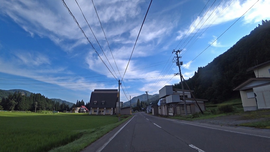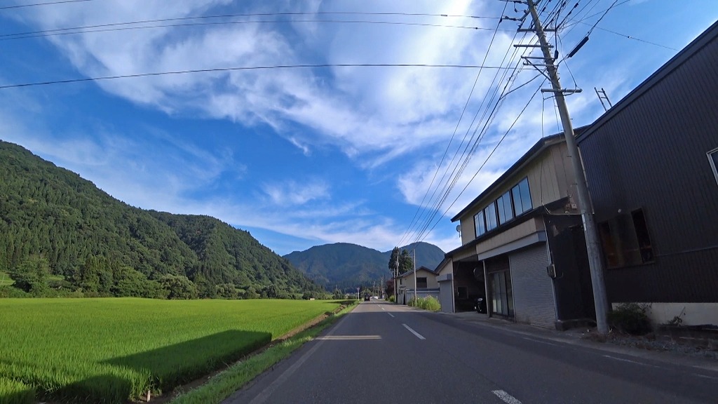 山間の道を進みますが、なだらかな場所が増え、民家や田んぼが増えてきました。