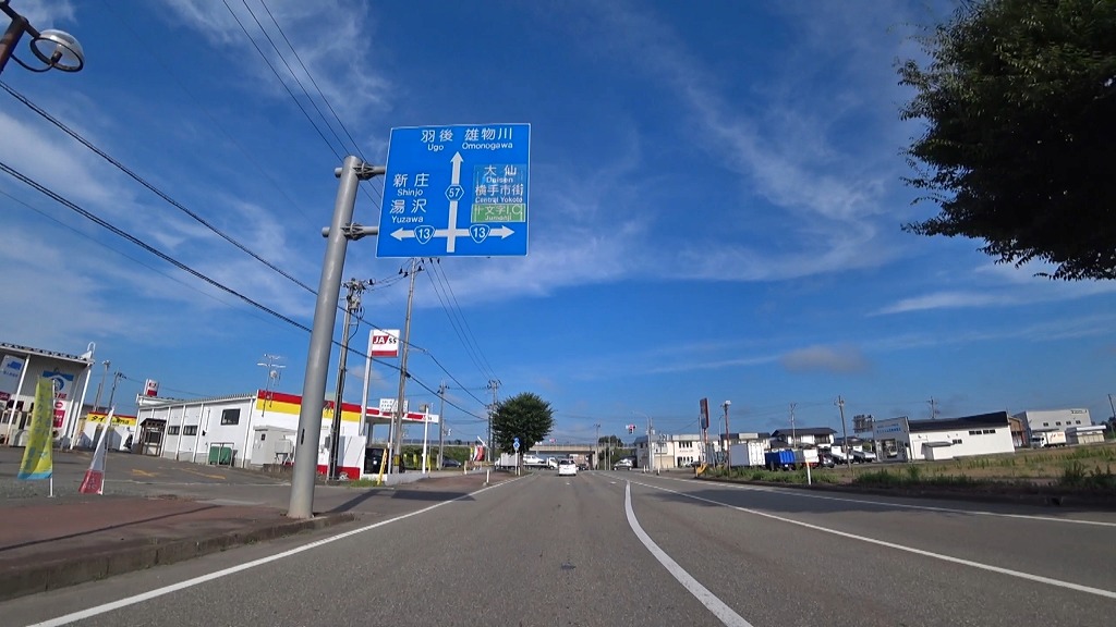 最後は秋田県横手市にある国道13号との交差点:佐賀会沖田交差点(信号あり)にて(G)ゴール。(54:11)
