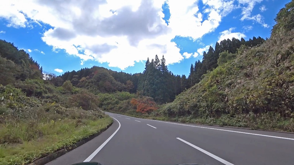 そして福島県道67号中野須賀川線を越え南側へと進むと、勾配が増え始め山間を進むワインディングに。