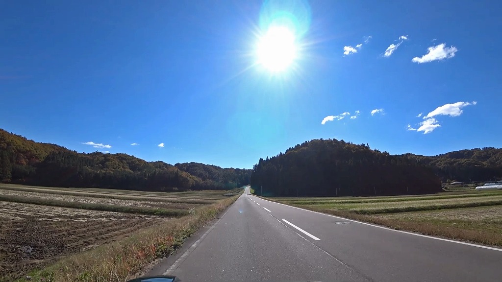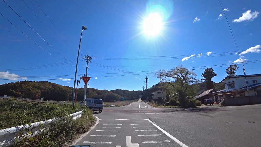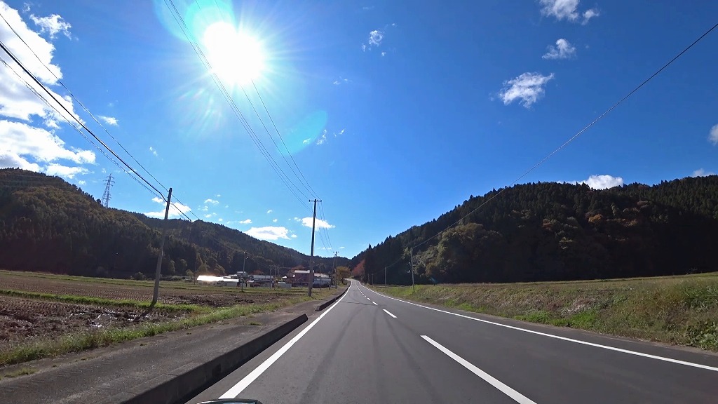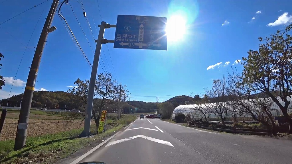 (S)スタートは福島県白河市大信隈戸にある福島県道58号矢吹天栄線との交差点(信号なし)から。
