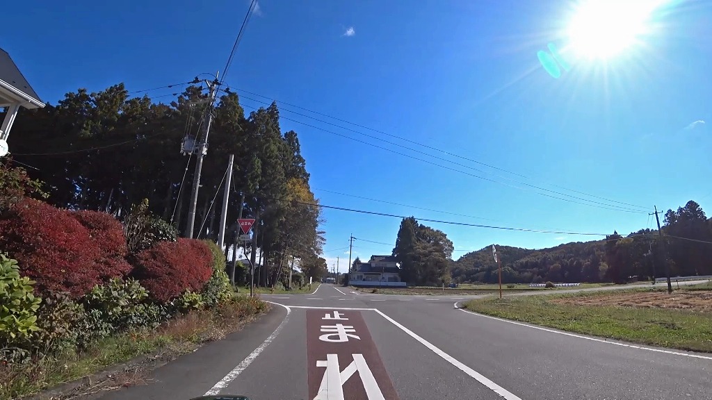 暫く進み、民家も少なくなってくると@交差点1(信号なし)が現れます。