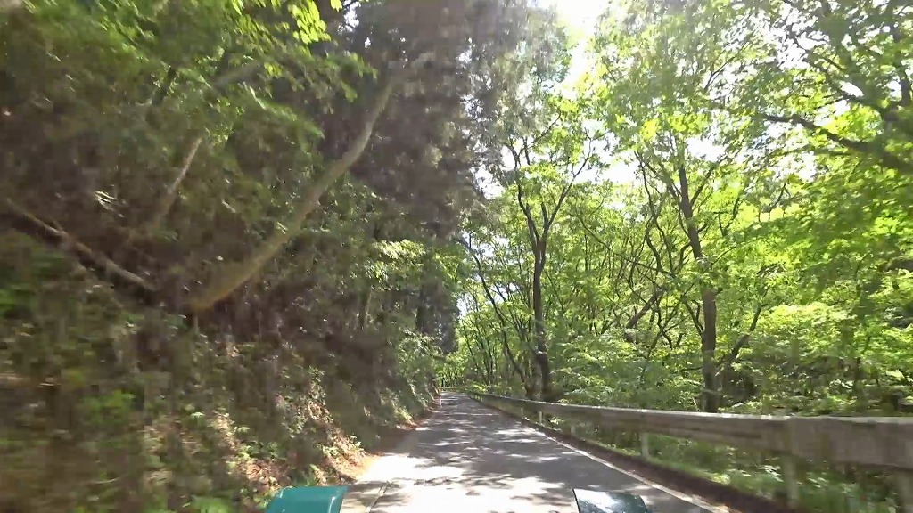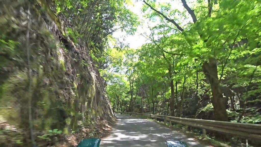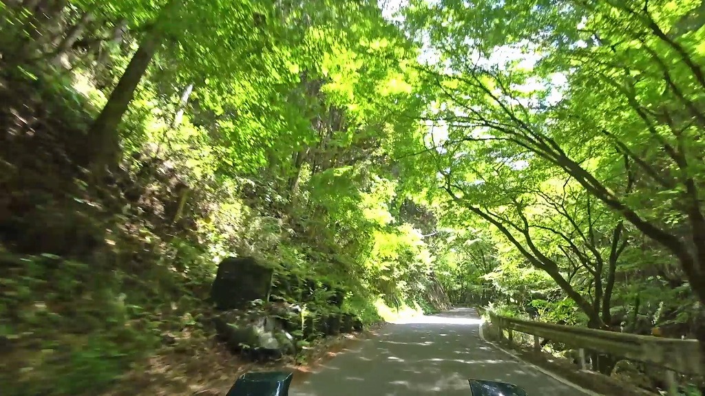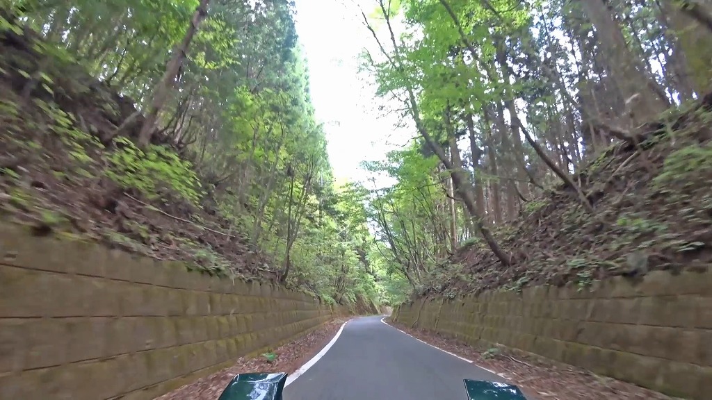 沢沿いに走る道は木々に覆われ、山の谷の様な場所を走っており、かなり閉鎖感のある道。