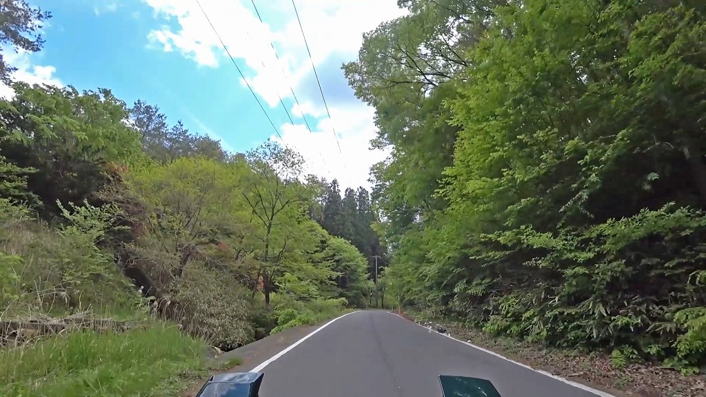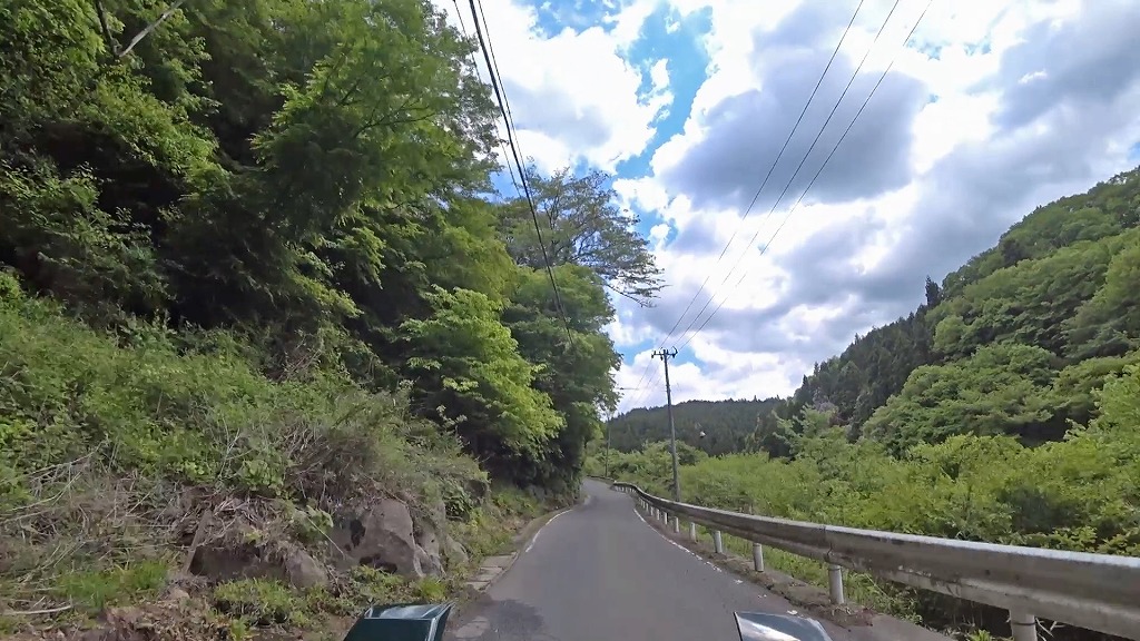 時折、やや広い道の区間や開けた場所はあるものの、茨城県側までの長い区間で狭路が続きます。