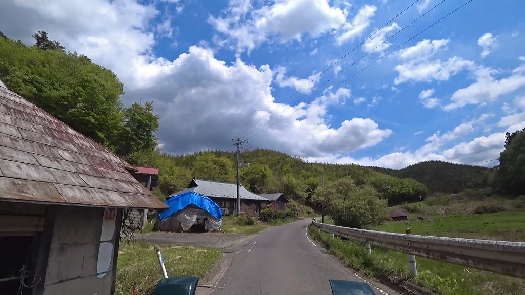 細くても時折ある民家や田畑。開けた場所があると少し安心しますね。
