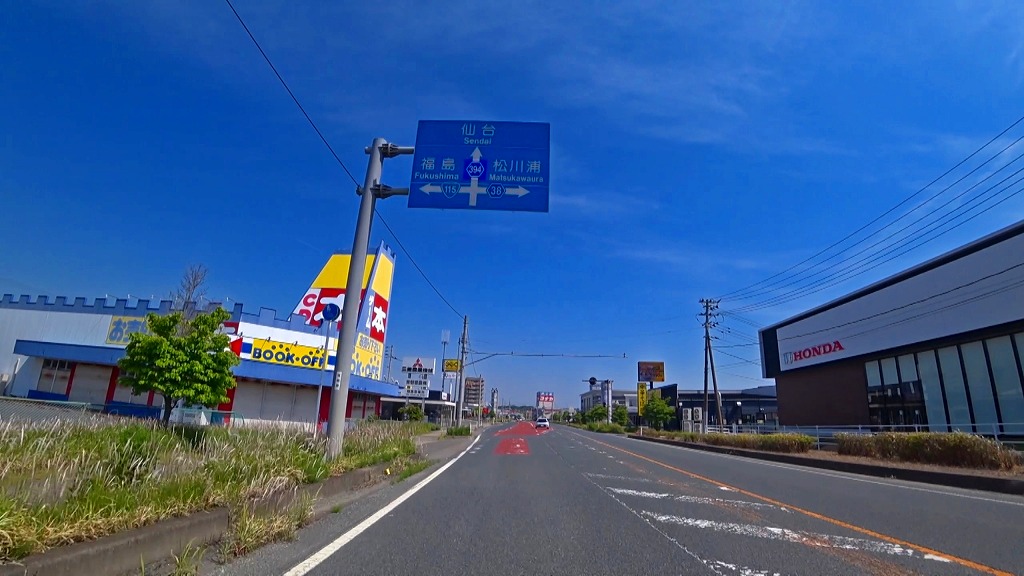 (S)スタートは福島県相馬市にある 福島県道394号相馬新地線との交差点(塚ノ町交差点:信号あり)から(01:37)