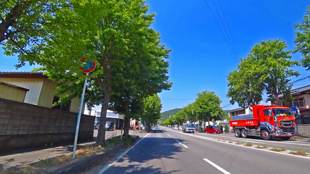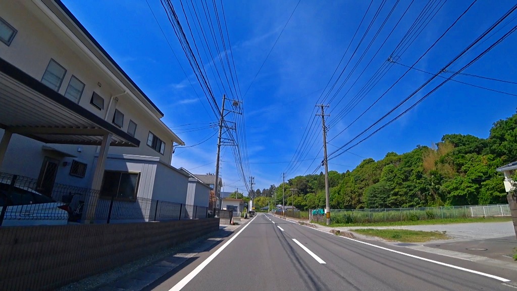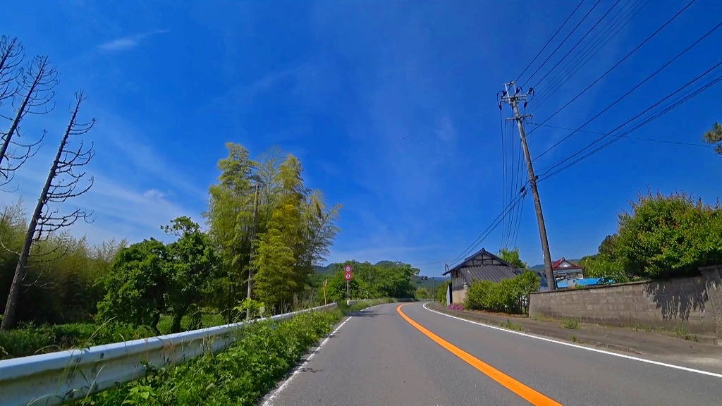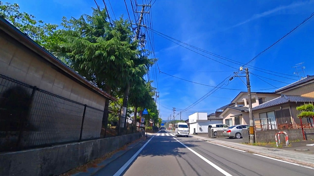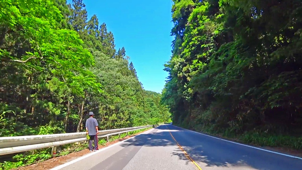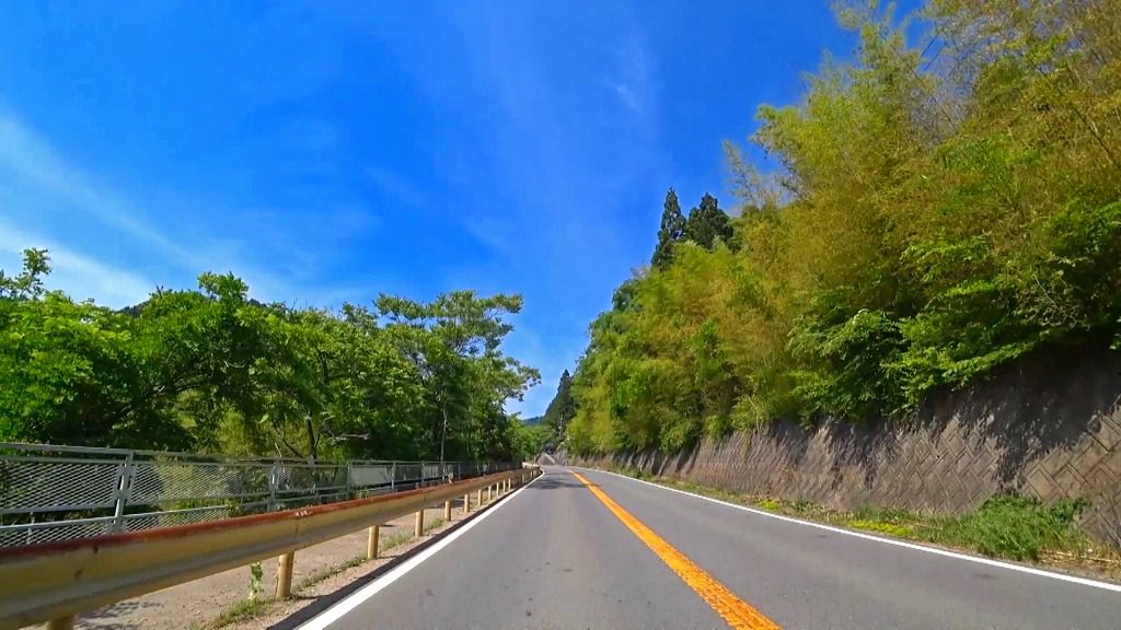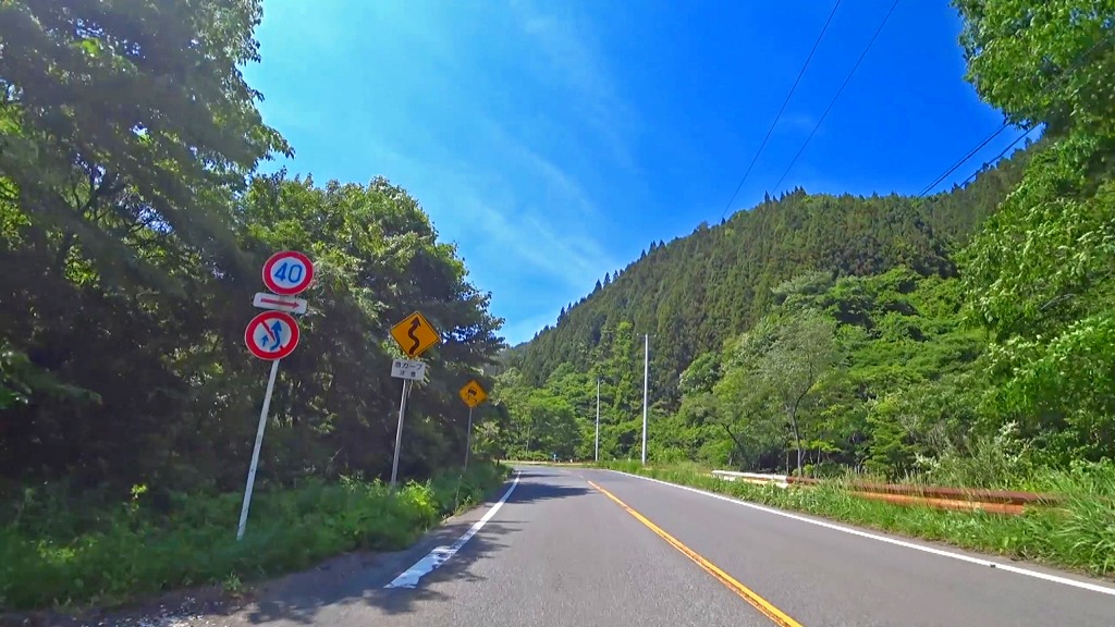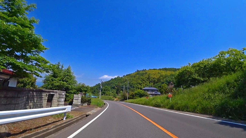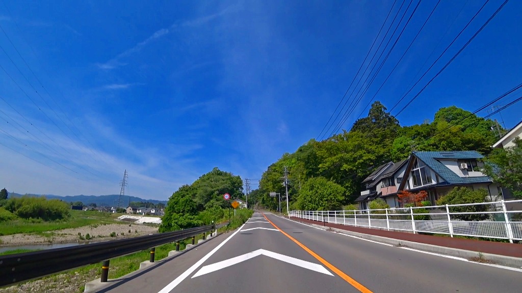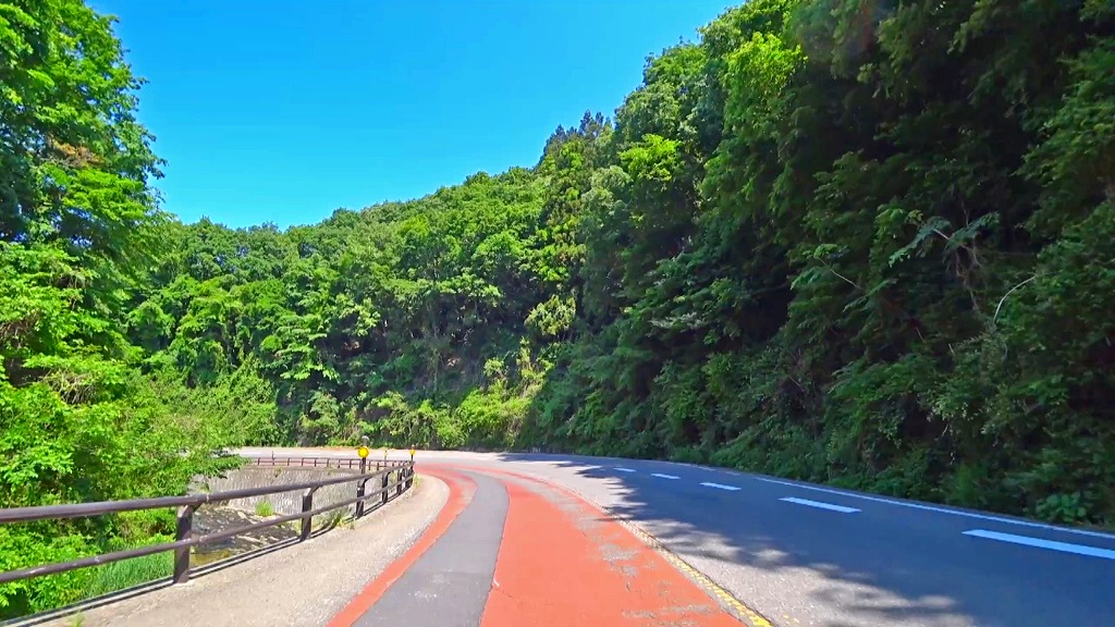 やや狭い印象の道で、片側に歩道がある場所もありますが、基本路肩が殆どない印象。