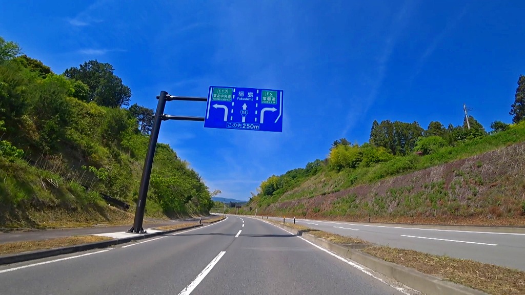今回はこの国道115号を福島県相馬市にある 福島県道394号相馬新地線との交差点(塚ノ町交差点)から福島県福島市にある国道4号との交差点(岩谷下交差点)までの約49kmのドライブコースです。