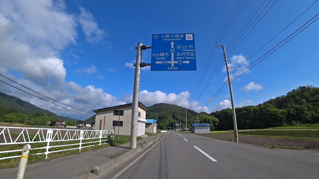 最後は山形県米沢市にある山形県道234号綱木小野川舘山線との交差点(信号あり)にて(G)ゴール。(37:15)