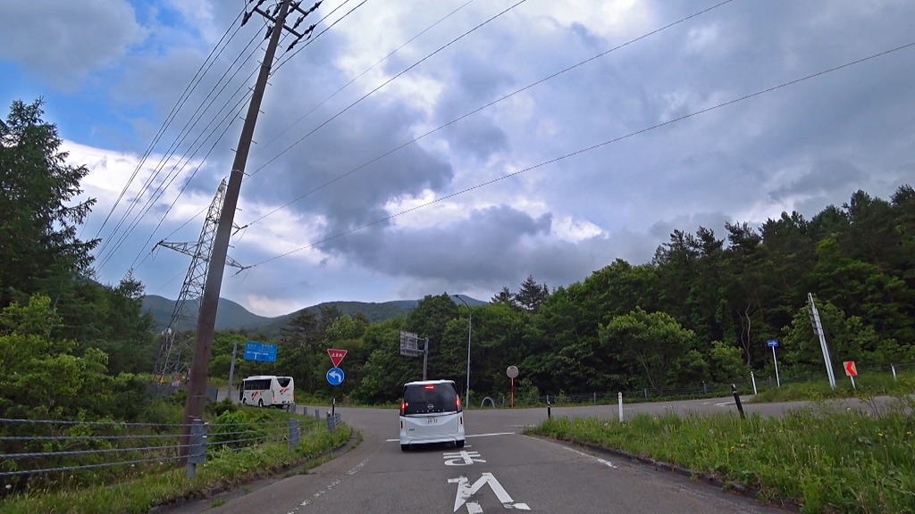 直ぐに表れる福島県道70号福島吾妻裏磐梯線との@交差点1(信号なし)が現れます。(02:16)