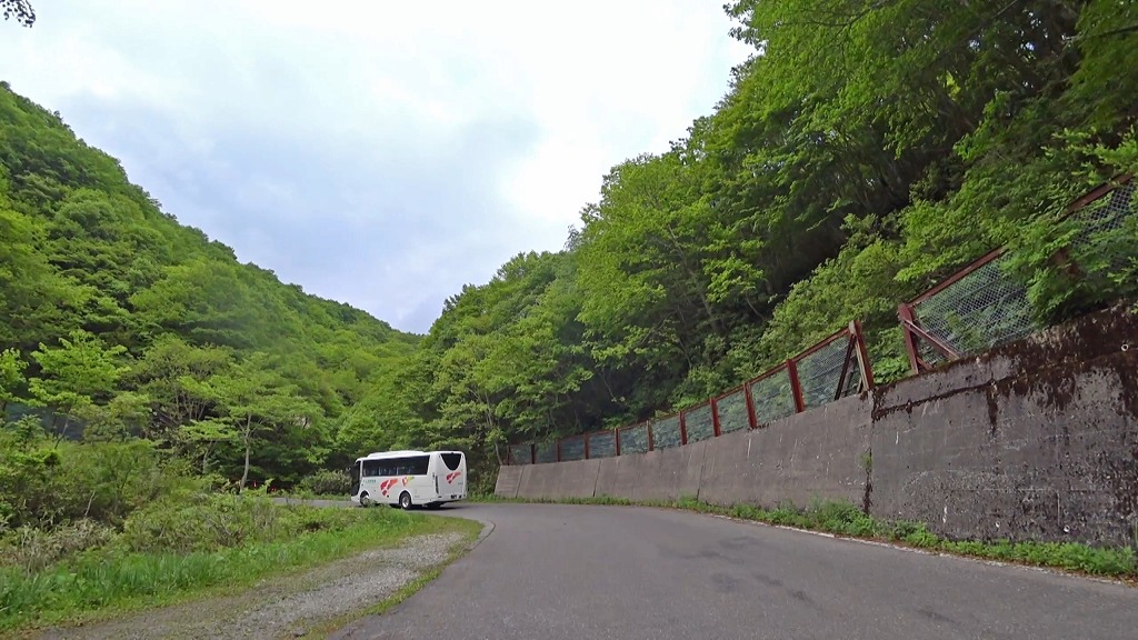整備されている道ですが、大型バスはなかなか大変そうです。