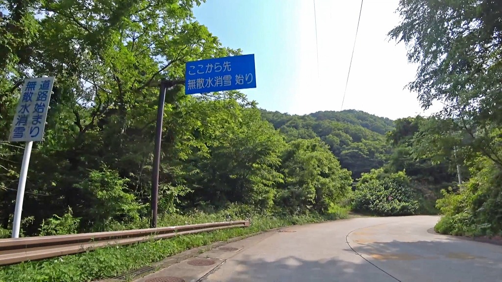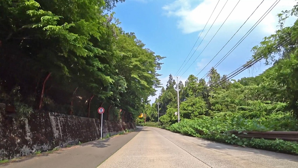 つづら折りの急カーブの続く区間。H急勾配・急カーブ注意(36:11)