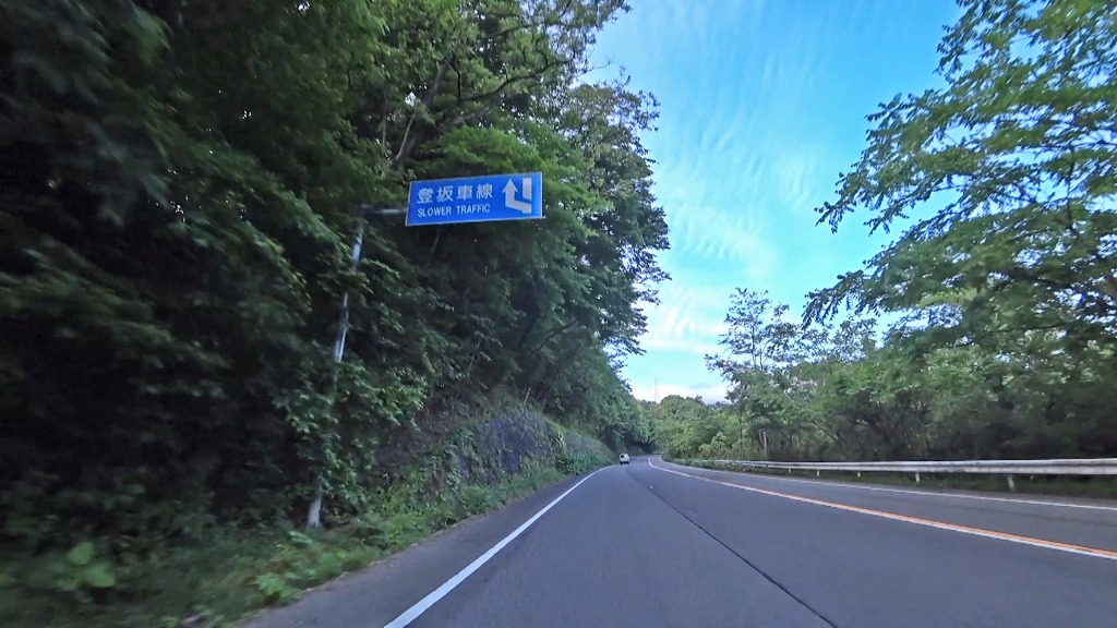 また登り側には登坂車線が多く設けられており、早い車に譲る事が比較的簡単ではありますが、降り側は譲る車線がありません。