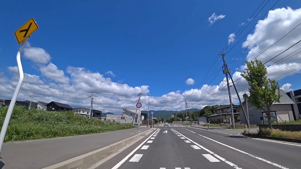 (S)スタートは山形県東置賜郡高畠町にある山形県道1号米沢高畠線と山形県道7号高畠川西線との交差点(信号あり)から(01:40)