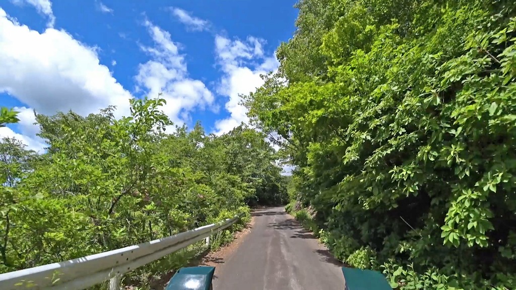 見通しの悪い狭い山道に加え、ガードレール等無い場所もある為、走行する際は十分に注意して下さい。(夜は絶対走りたくない!!)