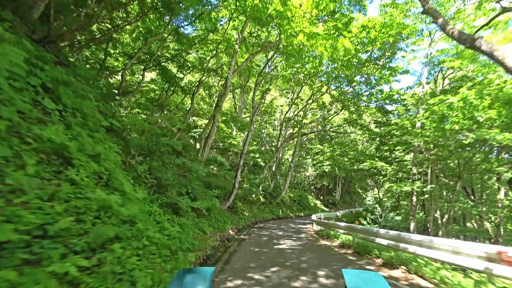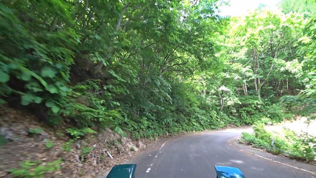 っと思っていましたが、降るにつれて険しさが増してきました。E狭路・見通しの悪いカーブ区間(30:57)