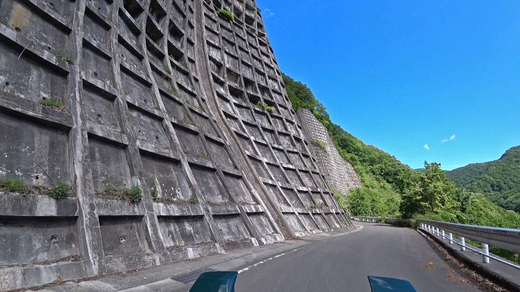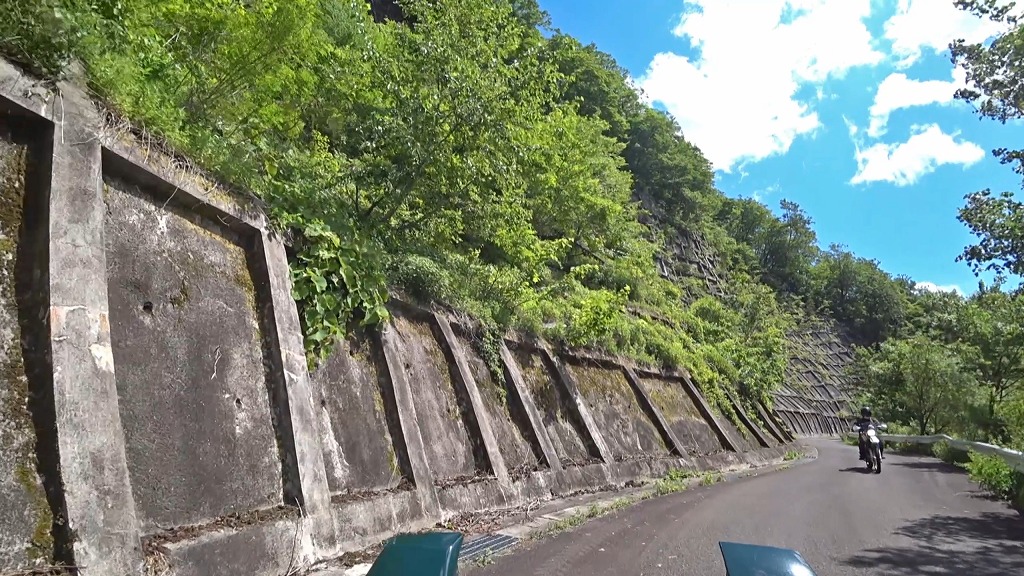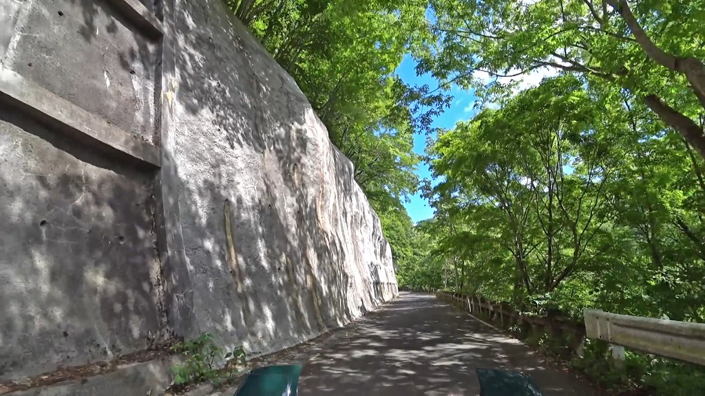 場所によってはガードレールなどは無く、路肩が少し盛り上がった縁石の様な物だけしかない場所もあります。