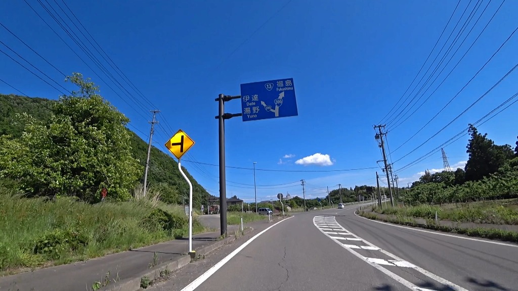 最後は福島県福島市にある福島県道3号福島飯坂線との交差点(信号なし)にて(G)ゴール。(1:12:30)