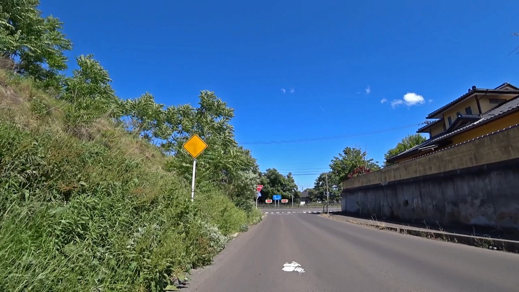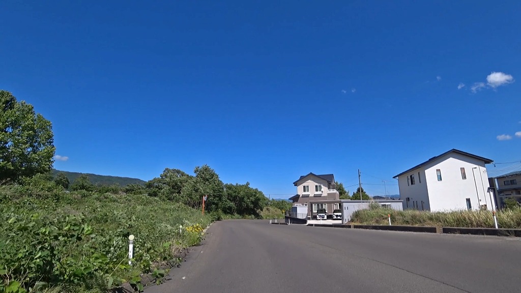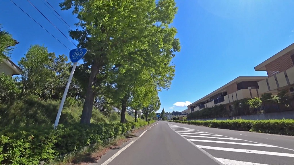 住宅の建ち並ぶ片側一車線の綺麗な道を進みます。