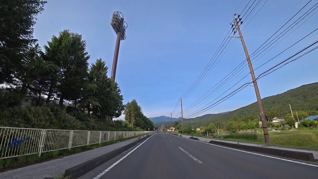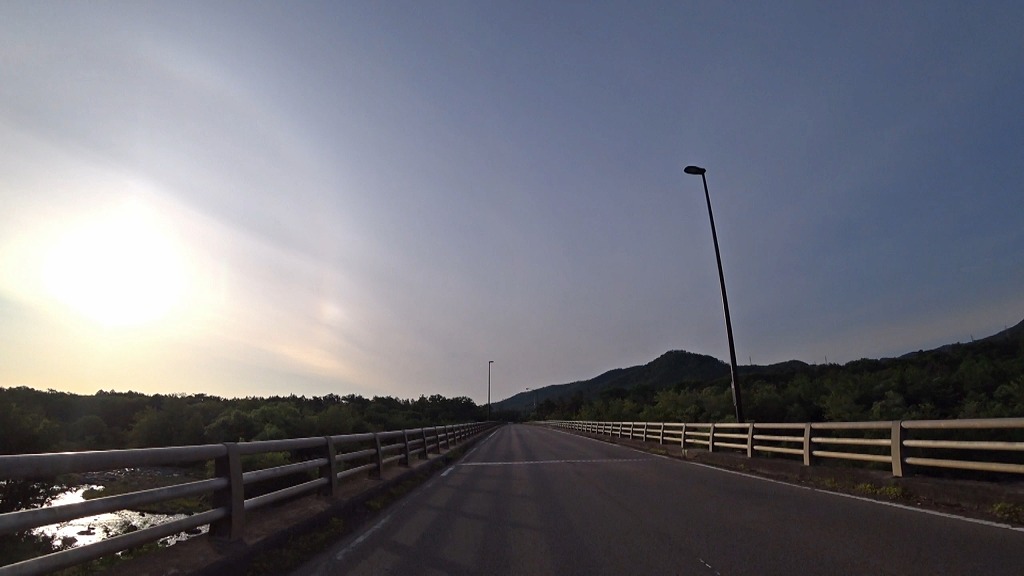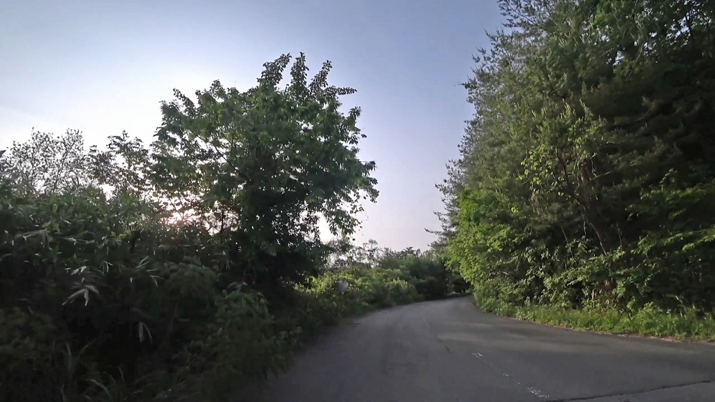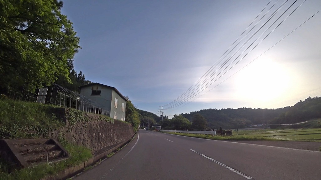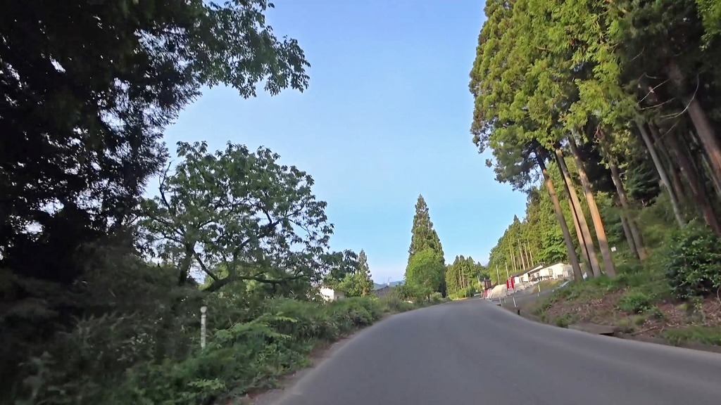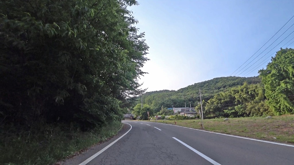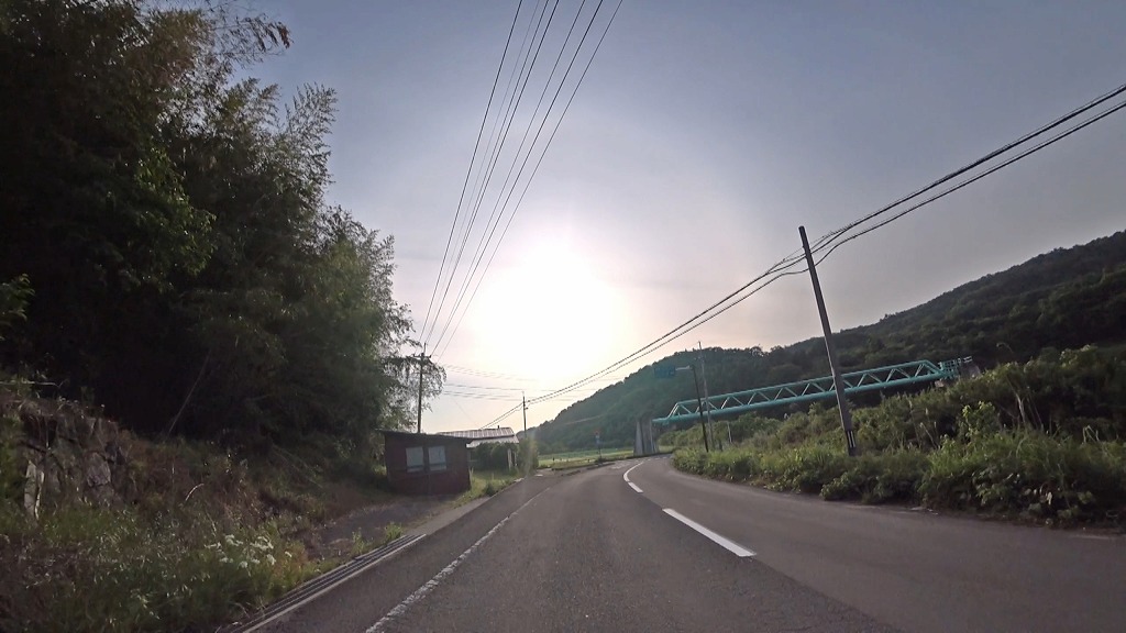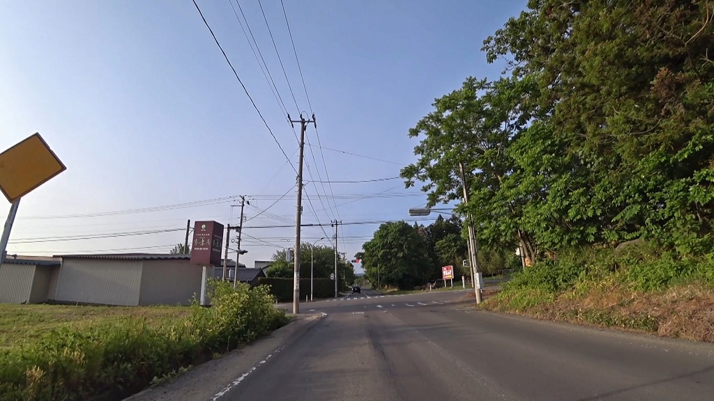 全線、片側一車線の道。早朝の為か赤点滅の信号があったので、それを除けば走りやすい道。