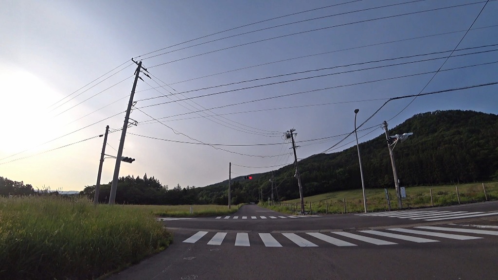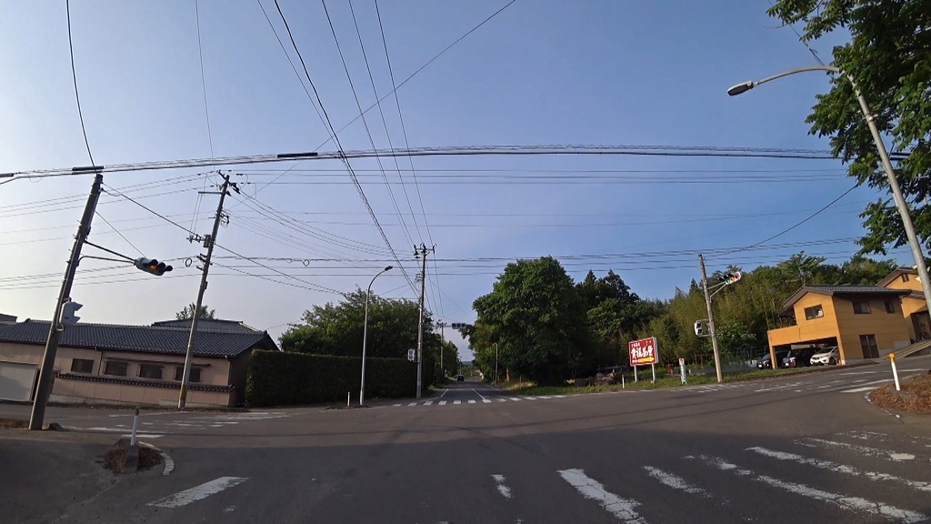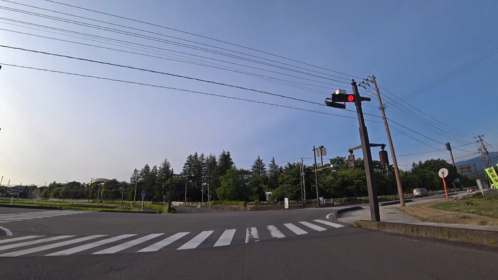降った先にA交差点1(信号なし)が現れます。(08:04)