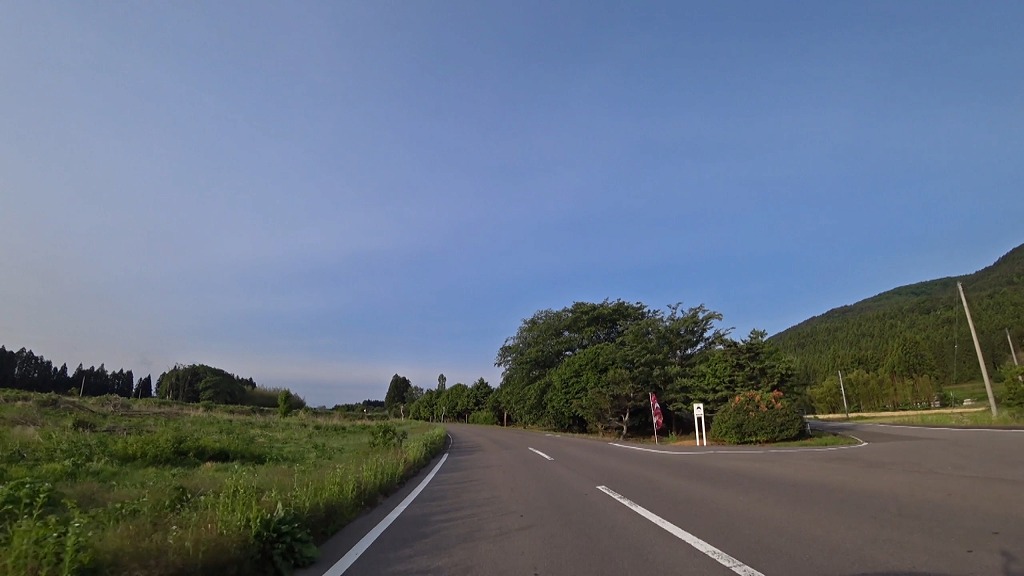 (S)スタートは福島県福島市飯坂町中野にある国道13号との交差点(中野銅屋交差点:信号なし)から(01:38)