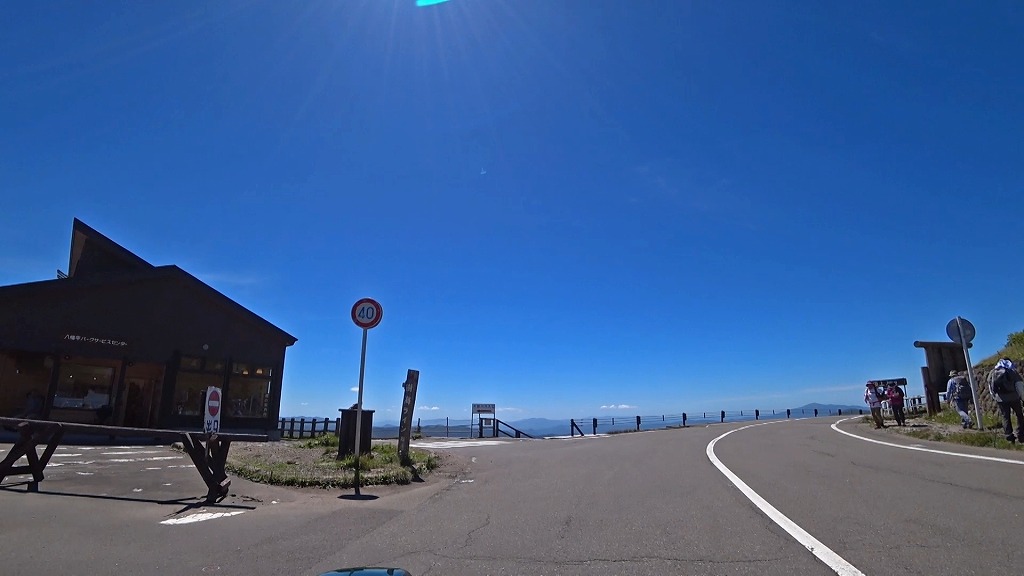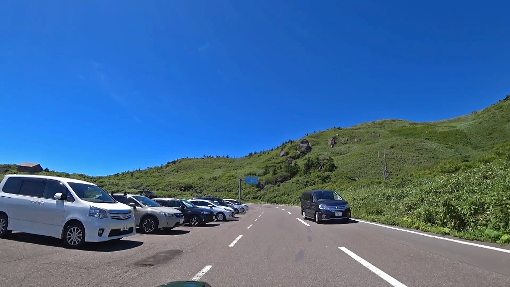 先程の駐車場から見返峠そいて八幡平山頂レストハウス周辺は登山客や観光客が多く、歩行者及び車両の出入りが多いのでご注意下さい。