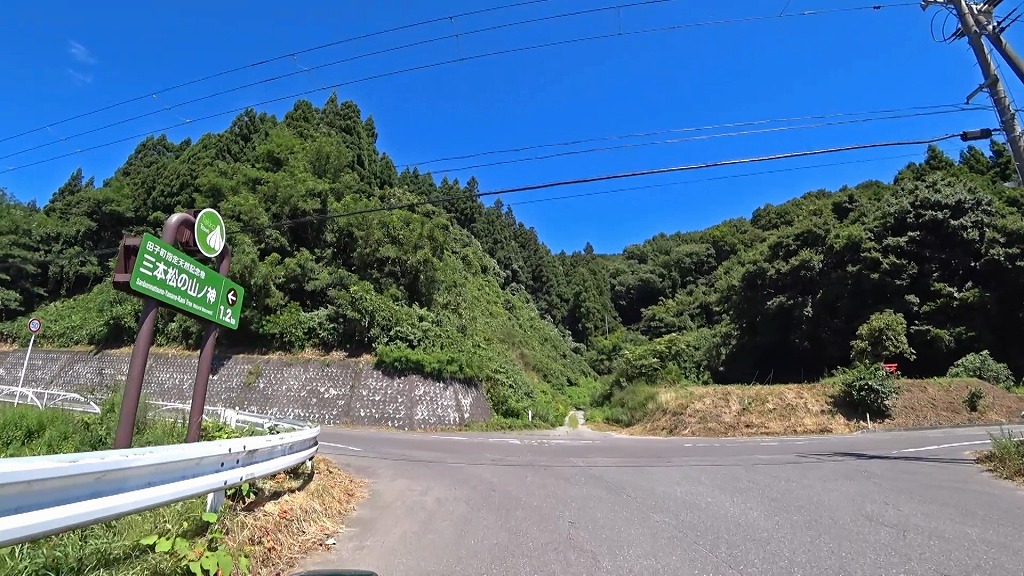 特に案内標識等は無く、交差点や標識が周囲の緑で隠れており、近づくまで分かりにくいので注意。