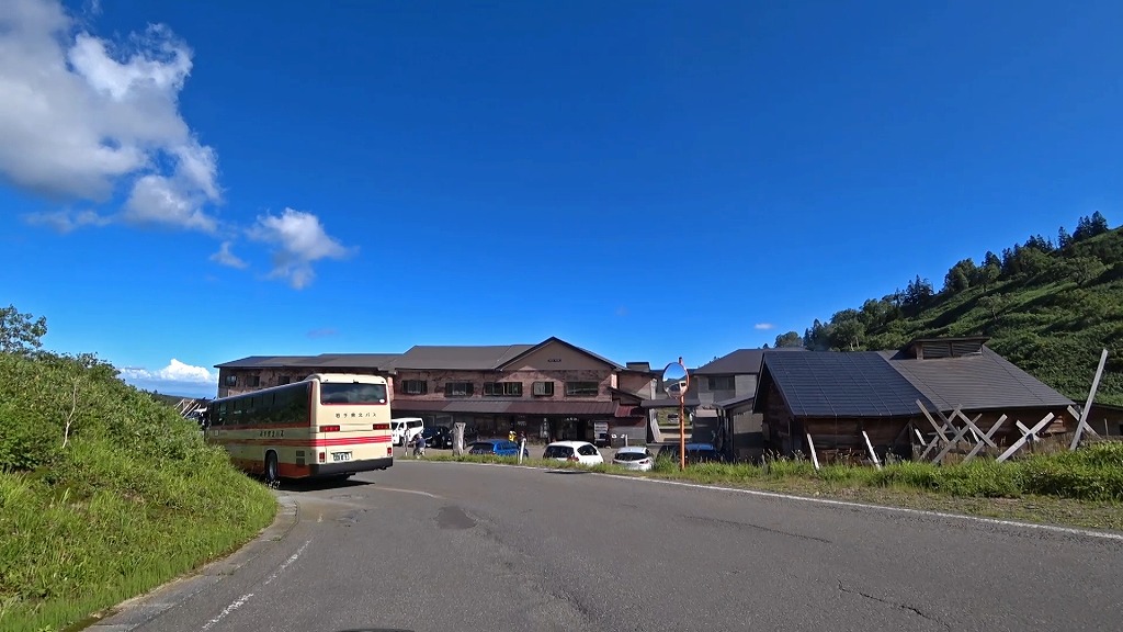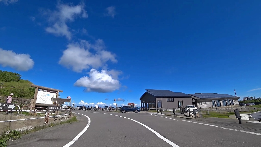 八幡平山頂レストハウス脇の交差点を入るのですが、この辺りは観光客、登山客等の歩行者が多く、また駐車場等への出入りする車両も多い為、十分注意して下さい。