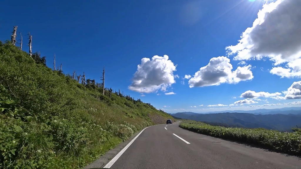 今回はこの八幡平樹海ラインを秋田県仙北市にある八幡平アスピーテラインとの交差点(八幡平:見返峠)から岩手県八幡平市にある岩手県道212号雫石東八幡平線との交差点までの約17kmのドライブコースです。