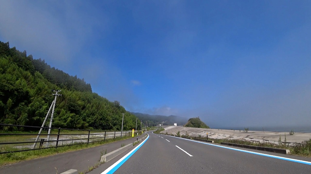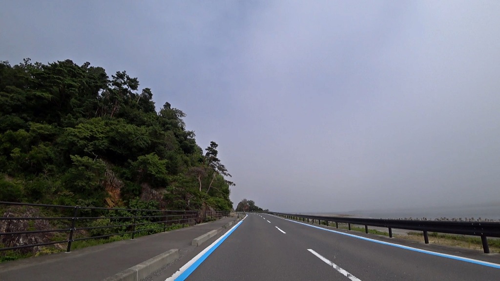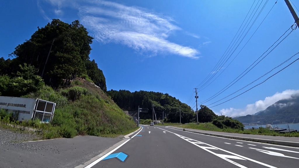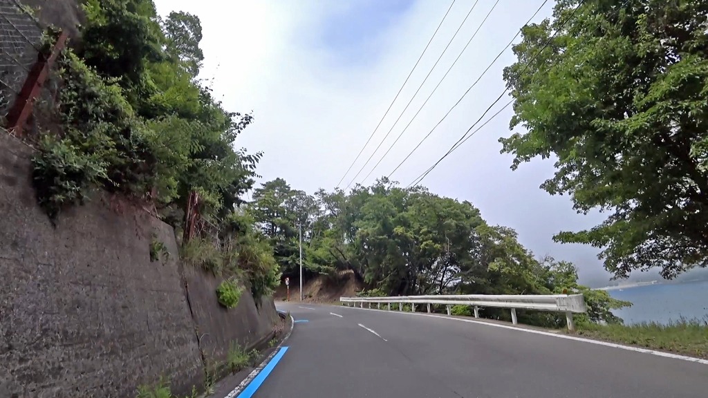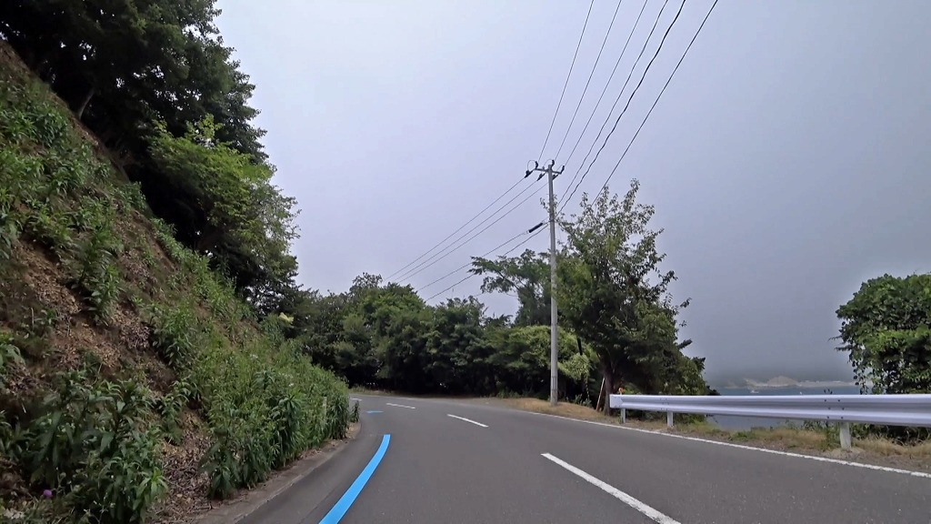 基本は山道で漁港など集落がある場所では開けた場所が多く、そこから海を望む様な印象。