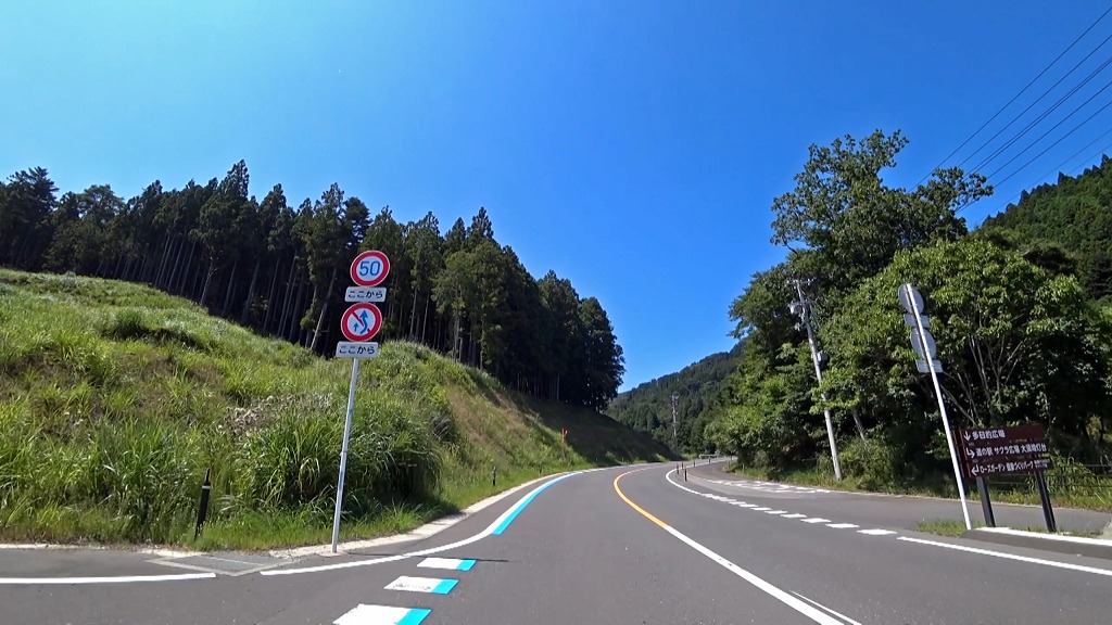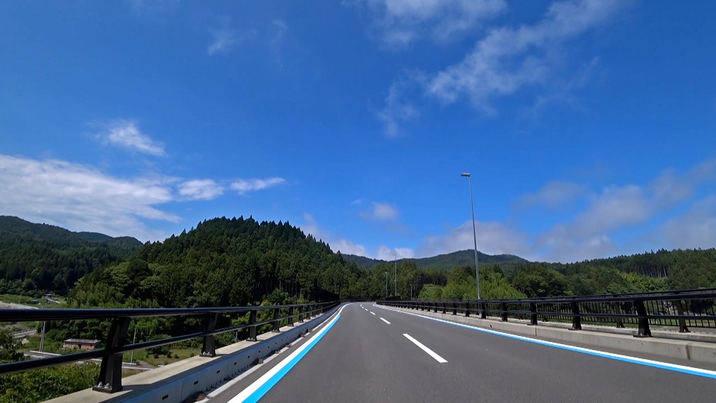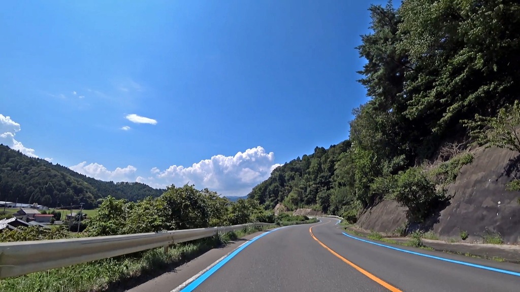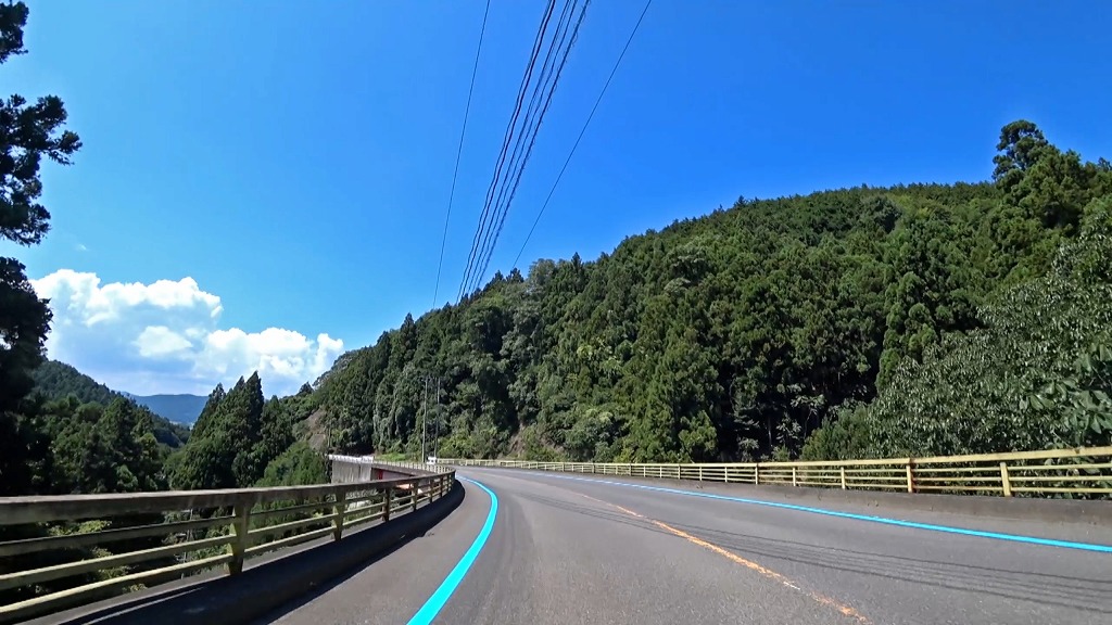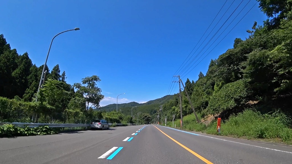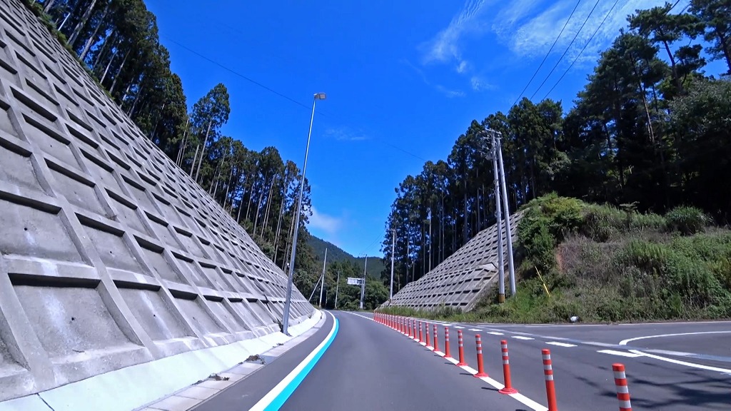 道は新しく整備された走りやすい区間と山道区間とのギャップが大変大きい印象ですが、山道区間であっても、確りと道幅の確保された走りやすい道になっています。