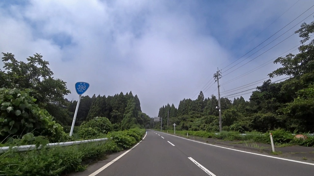そこから更に国道398号を北上し、宮城県本吉郡南三陸町にある国道45号との交差点(折立交差点)までの約50kmのドライブコースです。